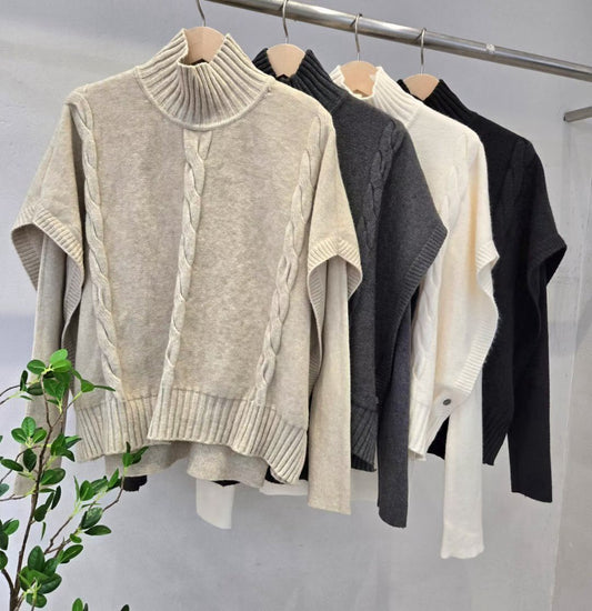 1D123 兩件式立領斗篷+合身親膚針織衫