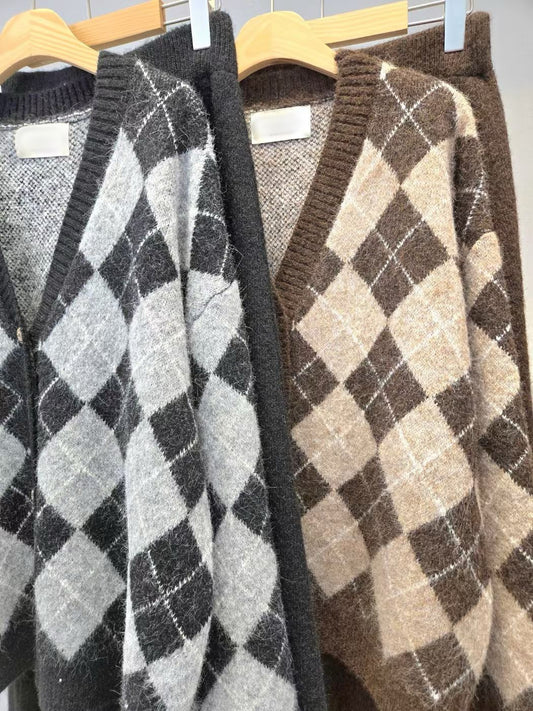 1D111 菱格紋外套+長傘裙 毛料套裝