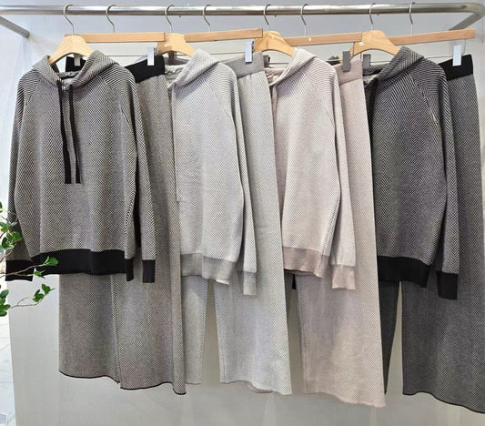 1D116 短針織衫+拉鍊外套+長裙 三件組