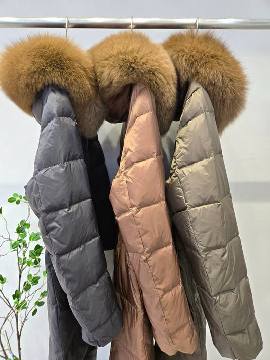 1D109 狐狸毛帽鴨絨長版外套(90%鴨絨)