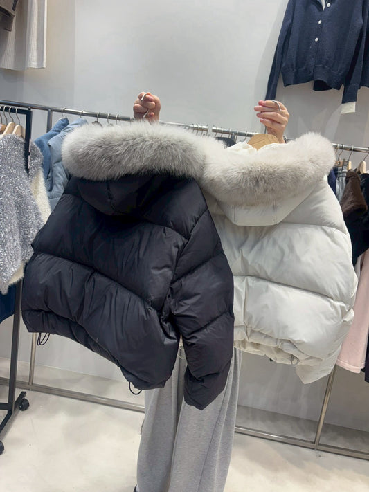 1D107 浣熊毛帽鴨絨短外套(毛可拆)