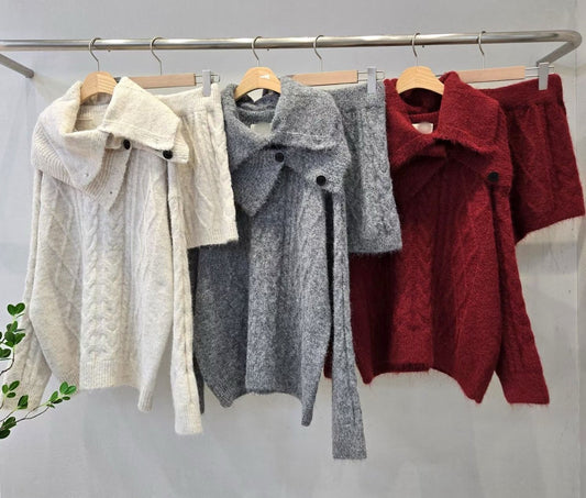 1D110 麻花紋針織脖圍+毛衣+短褲三件組