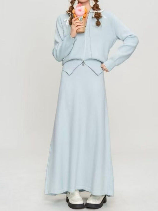 1D112 拉鍊短版衛衣+長棉裙套裝