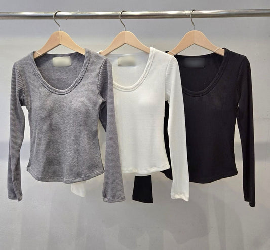 1D108 V領BRA蕾絲螺紋棉長T(內磨毛)