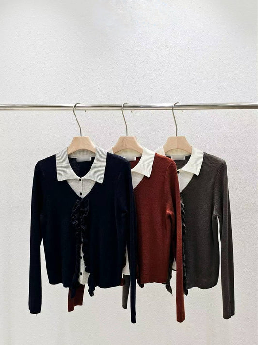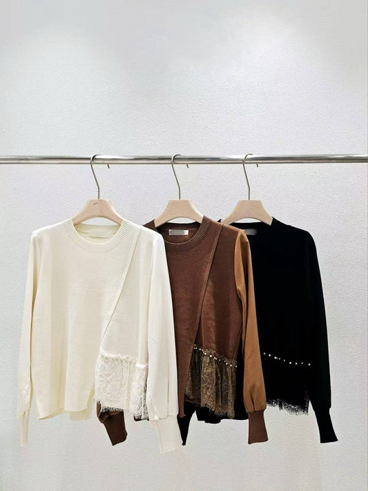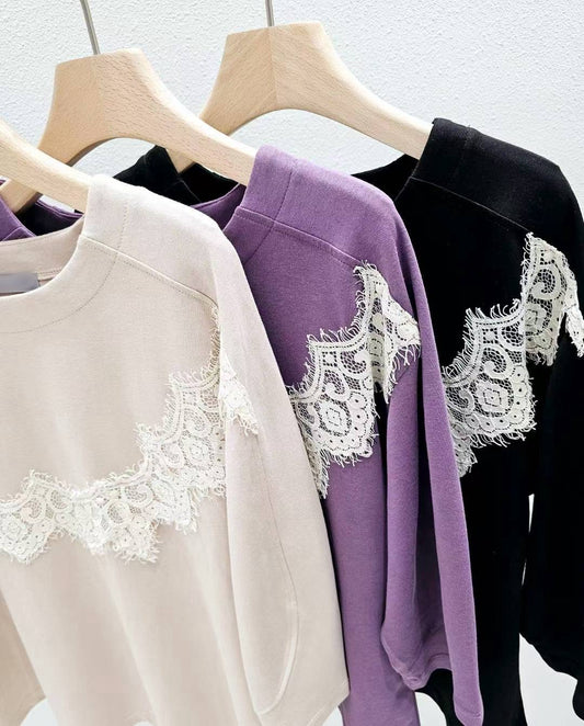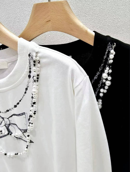 9D102 珍珠項鍊蝴蝶結七分袖棉T