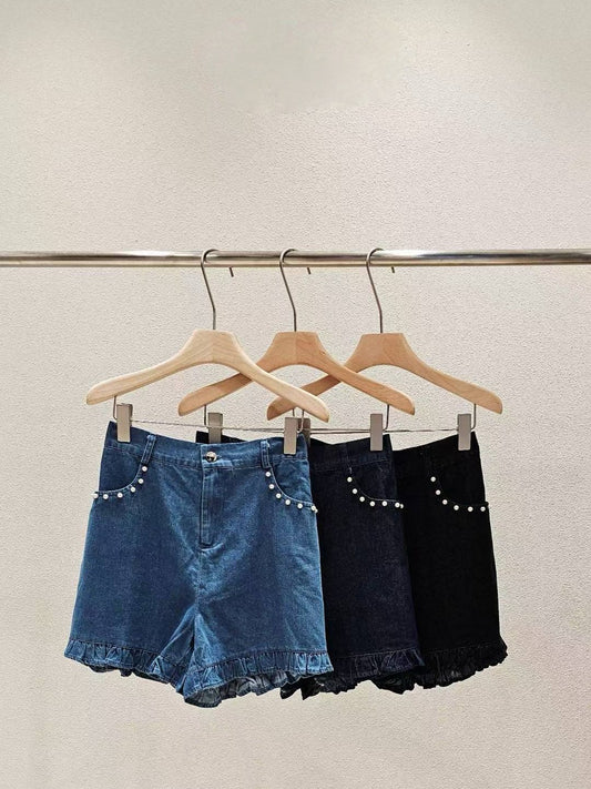 9D101 珍珠口袋荷葉邊短褲(後腰鬆緊)