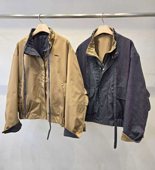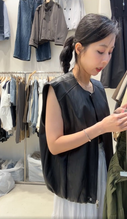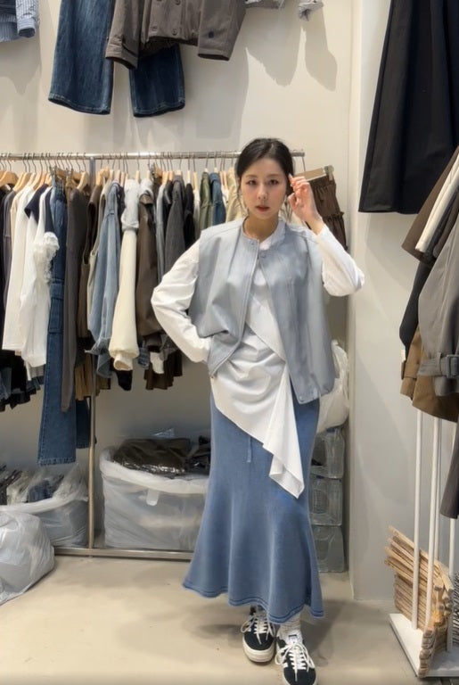 9A112 斜扣單寧綁腰外套+薄料皮長裙