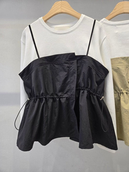 9A105 薄款短版衛衣+鬆緊腰單寧工作褲