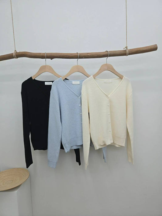 10C211 V領螺紋針織外套