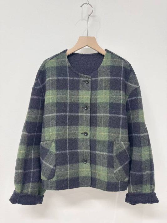 10D120 毛呢格紋圓領外套