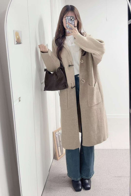 10D125 連帽牛角扣針織長外套