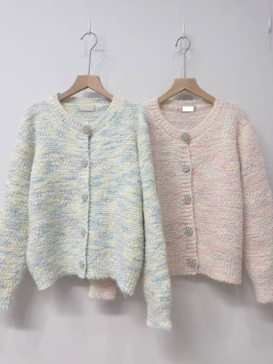 10D111 混色棉花糖珍珠扣針織外套