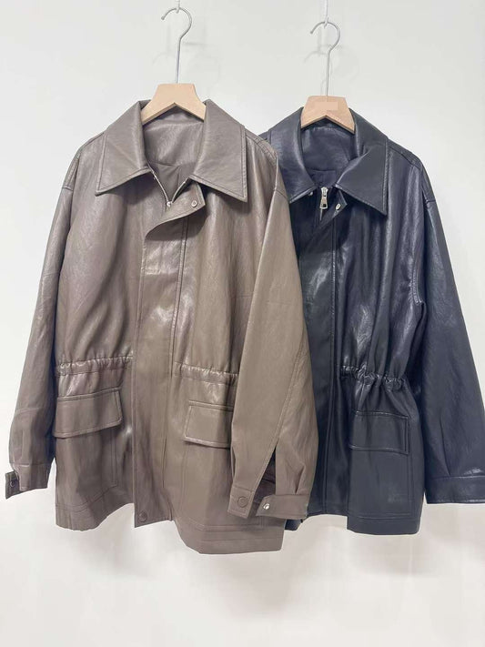 10D121 領子縮腰拉鍊皮外套