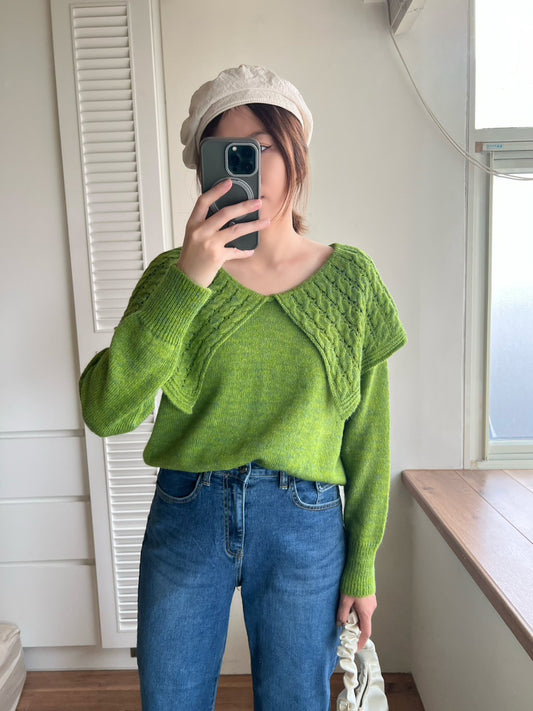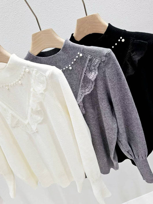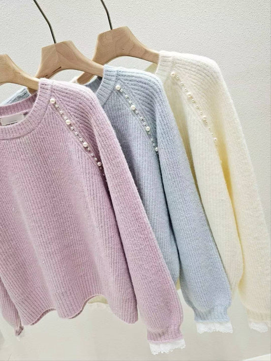 12B203 肩膀珍珠接袖毛衣