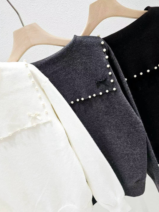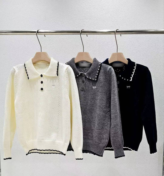 12B207 珍珠領小蝴蝶結針織衫