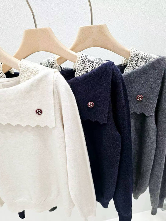 12B204 蕾絲船型領針織衫