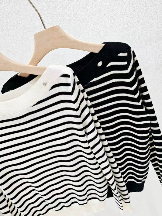 12B206 一字領條紋針織衫