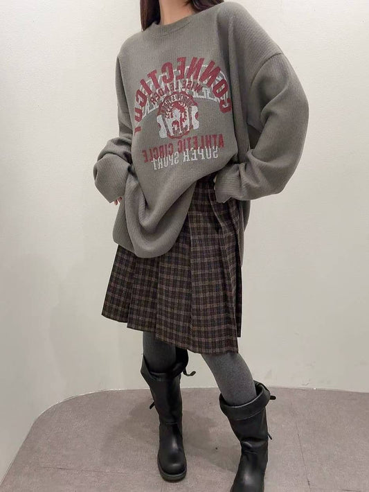 12A118 毛呢格紋百褶五分裙(後鬆緊)