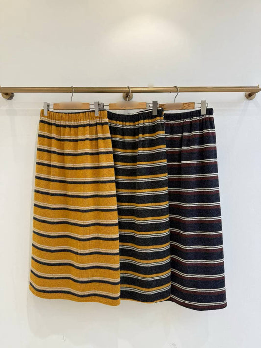 12A113 鬆緊腰配色橫條針織棉長裙