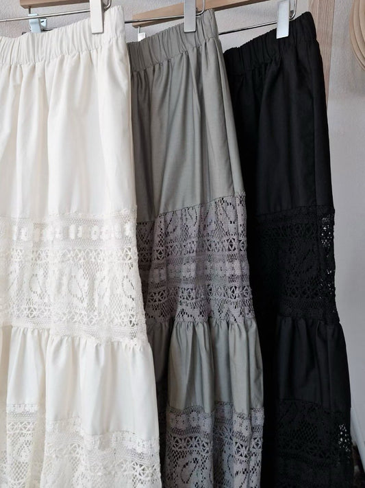 12C302 鬆緊腰蕾絲長裙