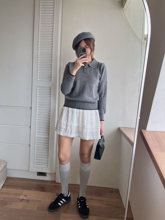 KS744 荷葉邊雪紡短褲裙