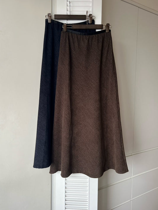 12B102 鬆緊腰麂皮布面長傘裙