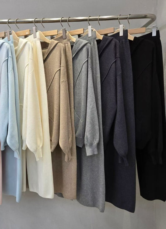 12A202 針織短袖+鬆緊腰長褲+連帽外套