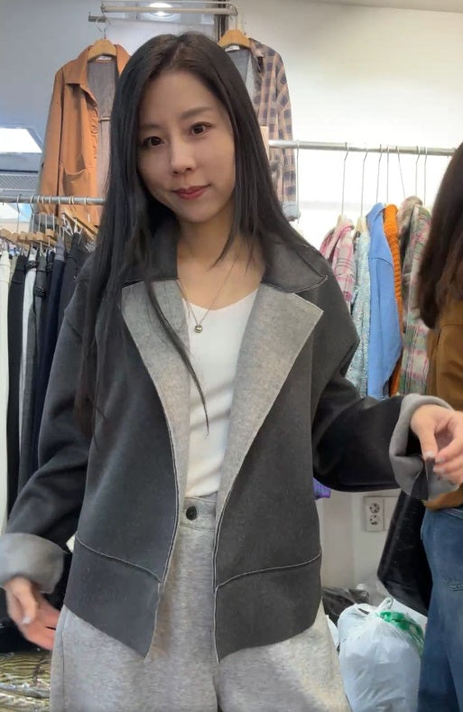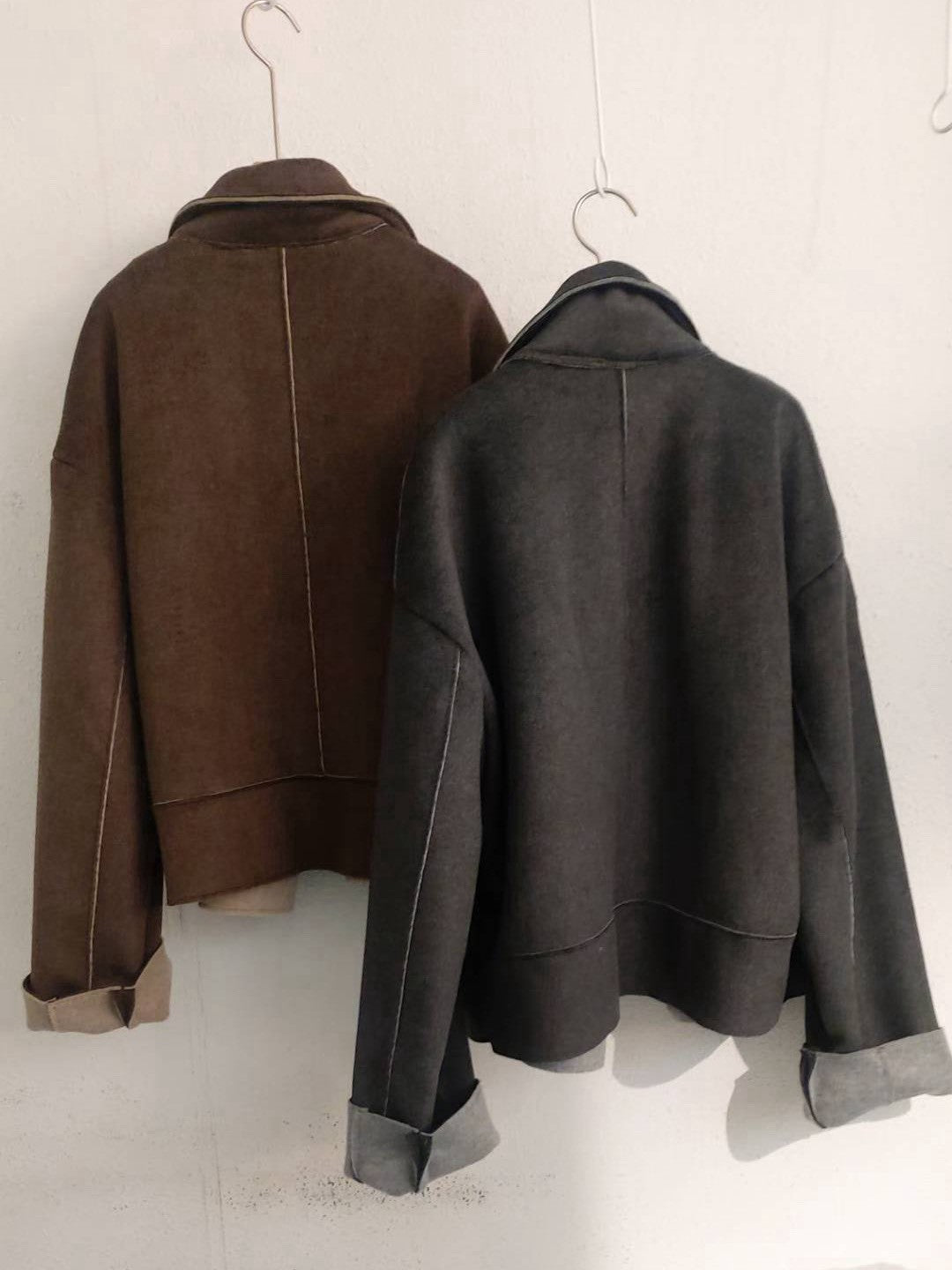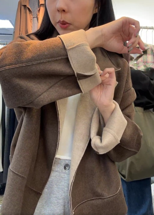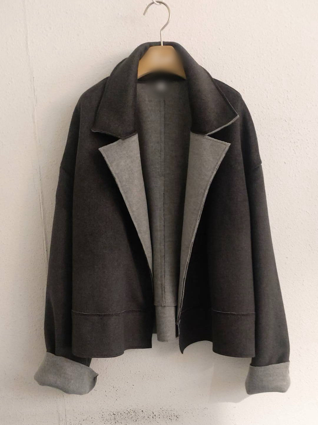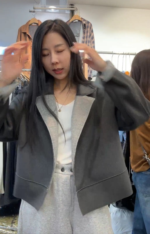 10A207 雙色毛呢翻領外套