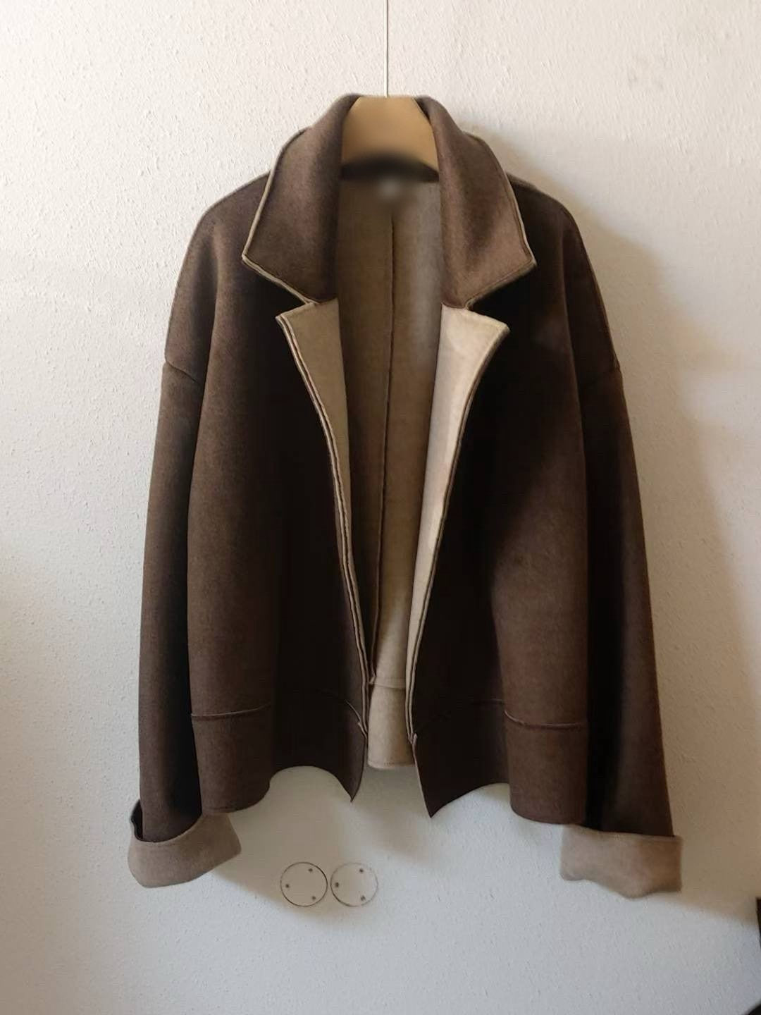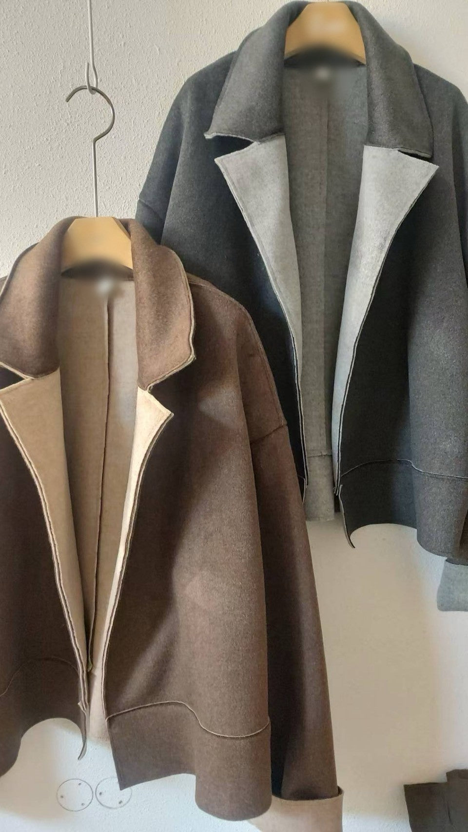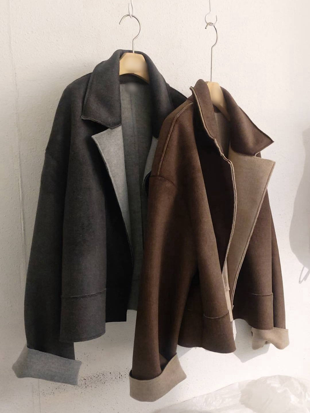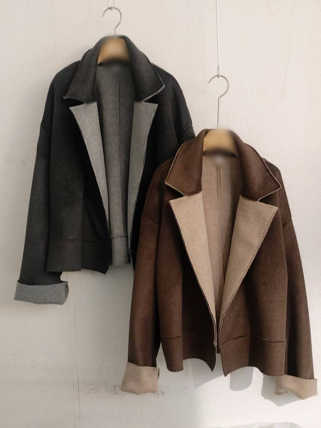 10A207 雙色毛呢翻領外套