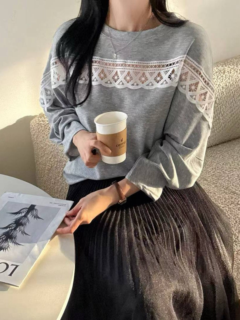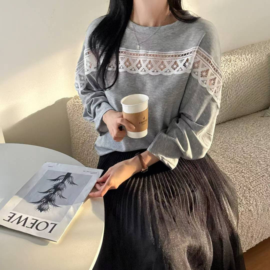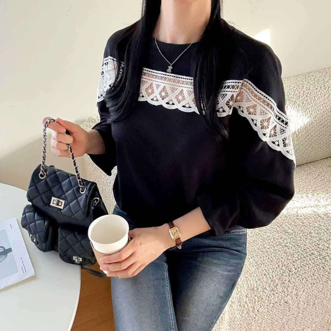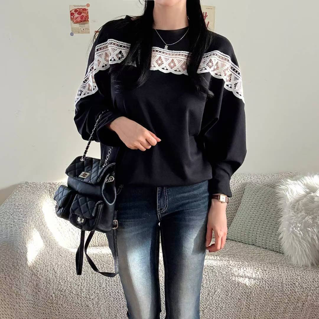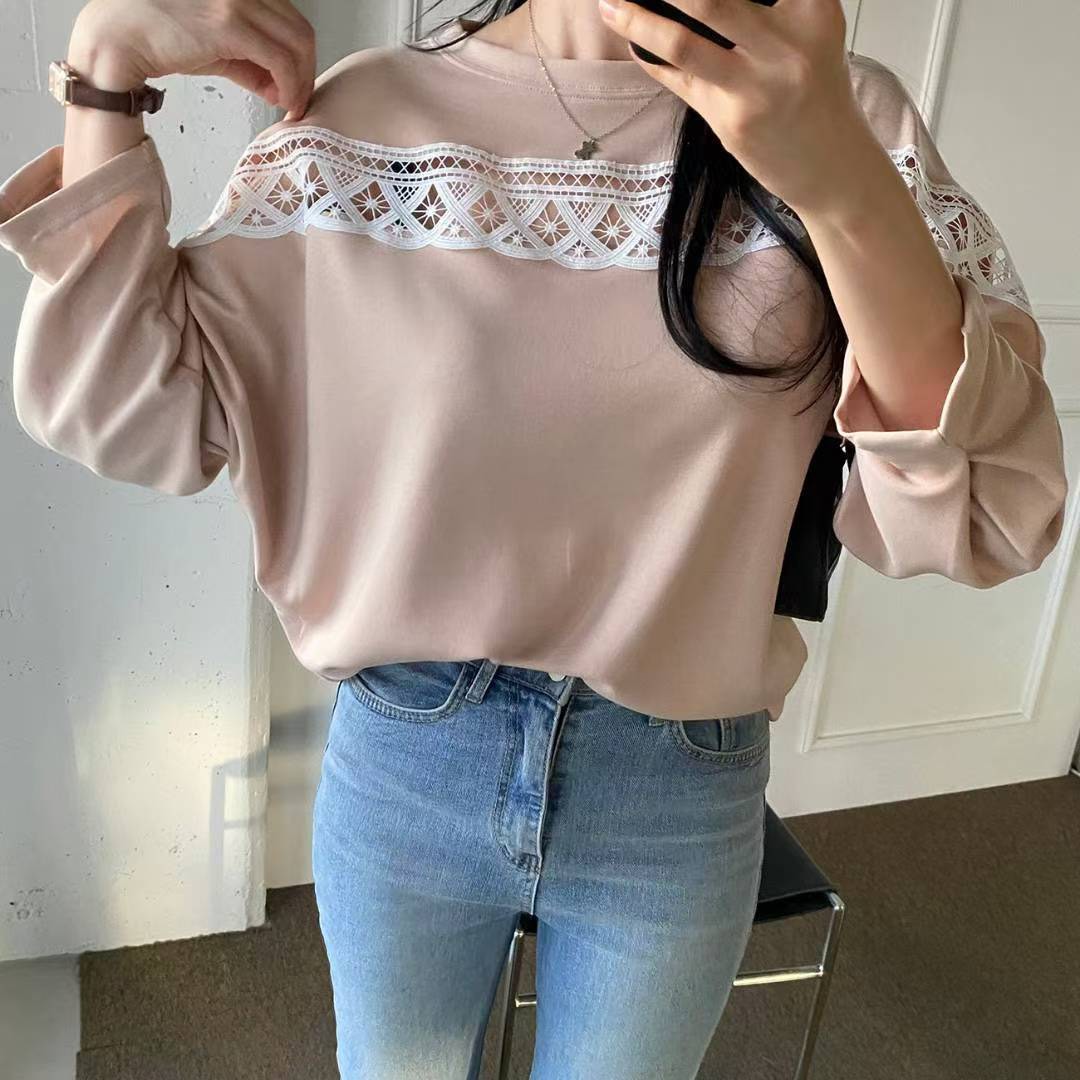 10B107 中拼布蕾絲舒服綿上衣