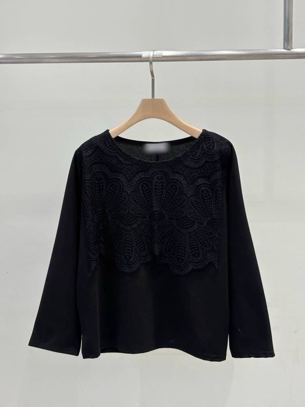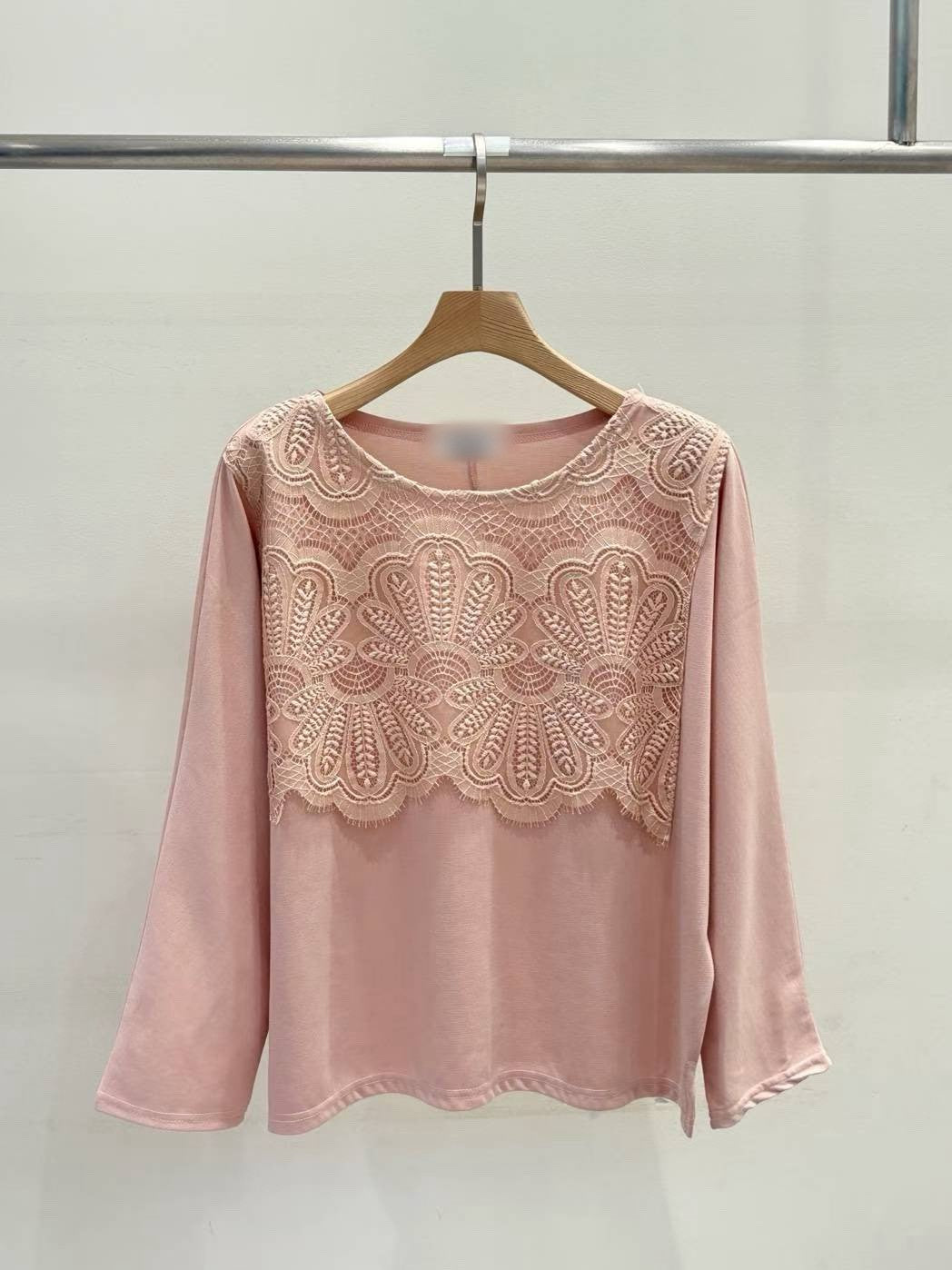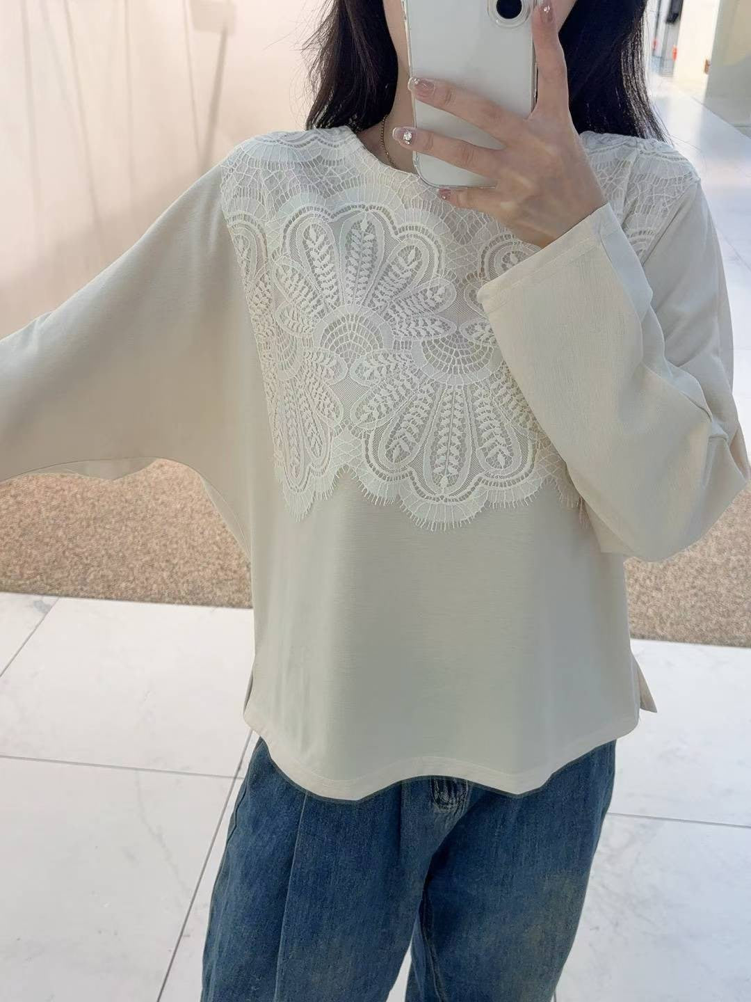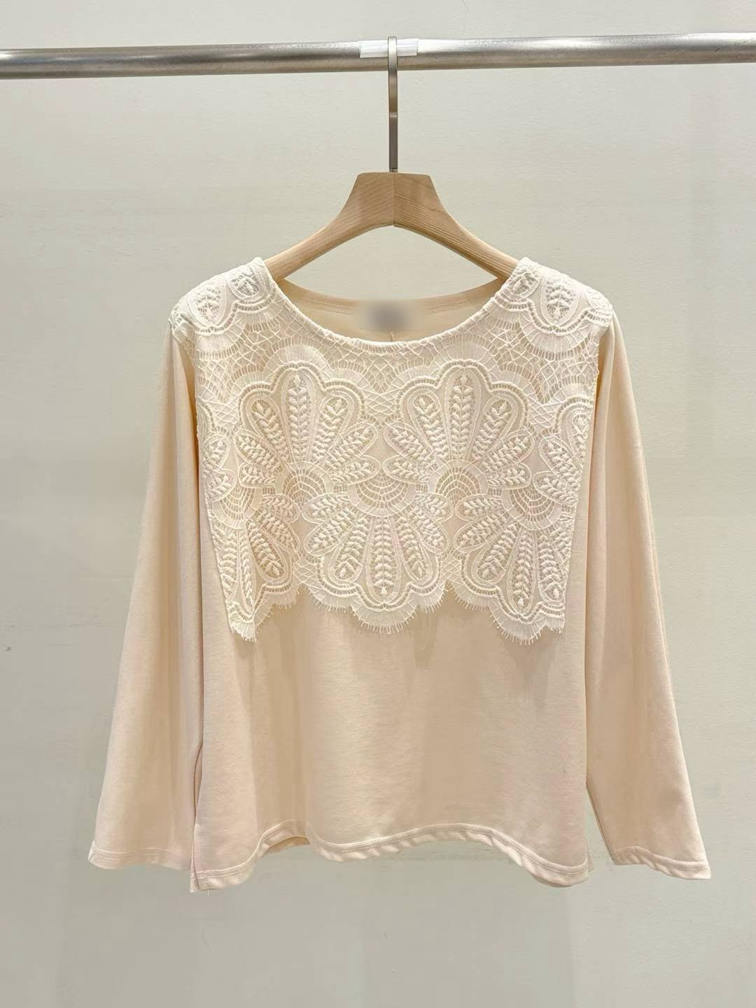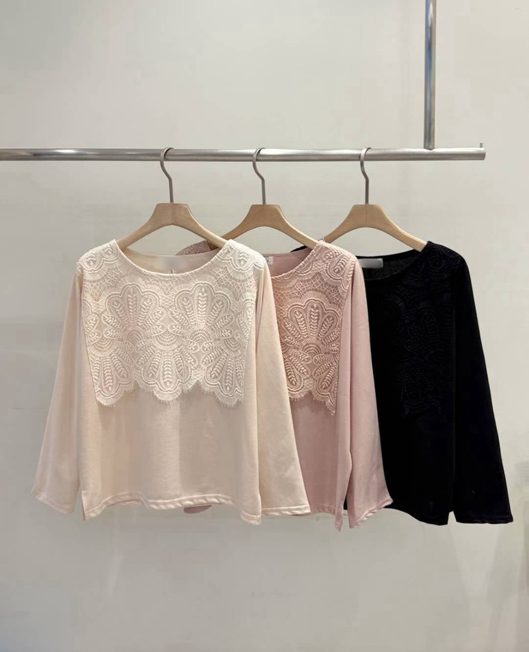 10B114 前襟大片蕾絲彈性棉上衣