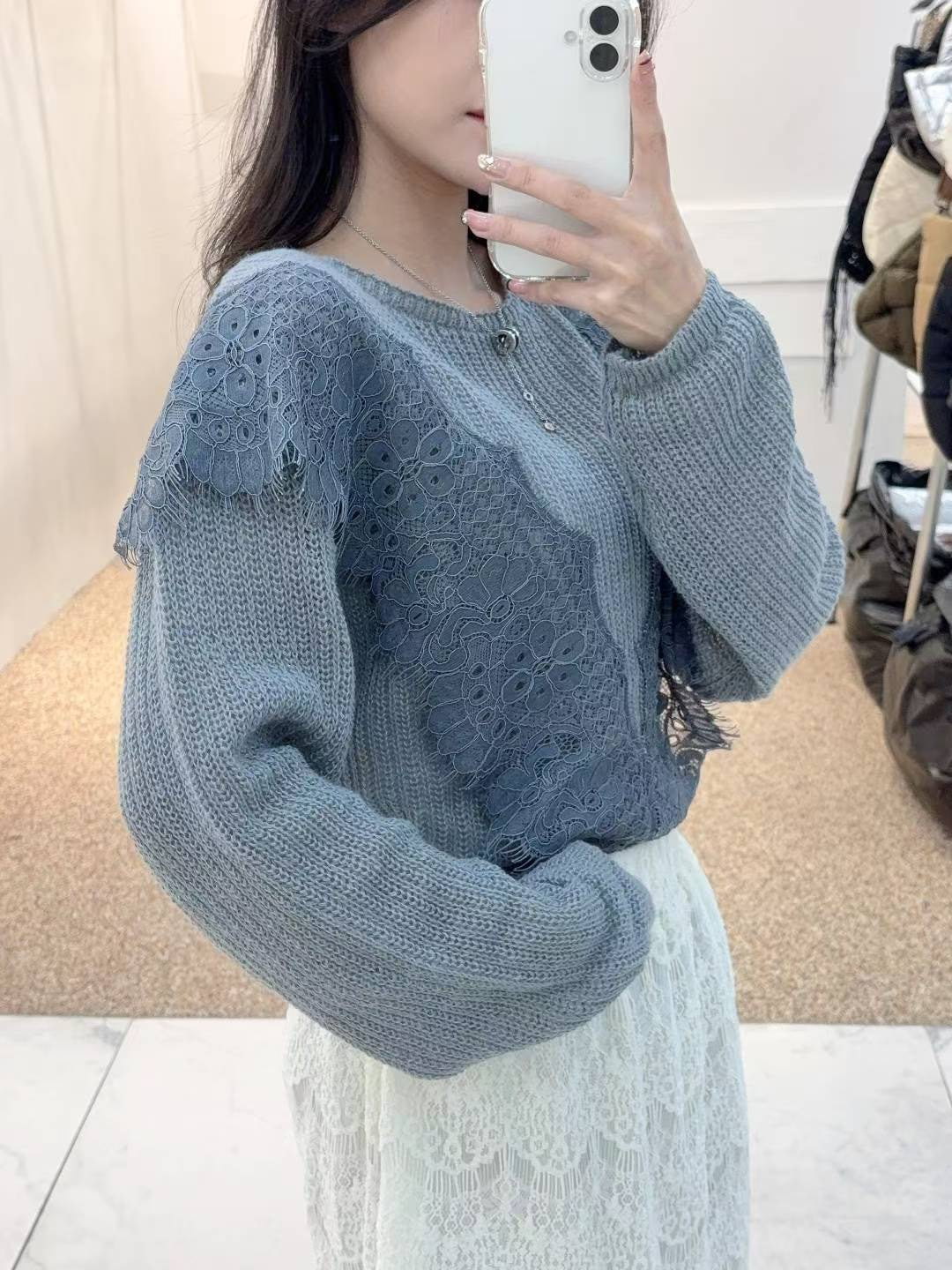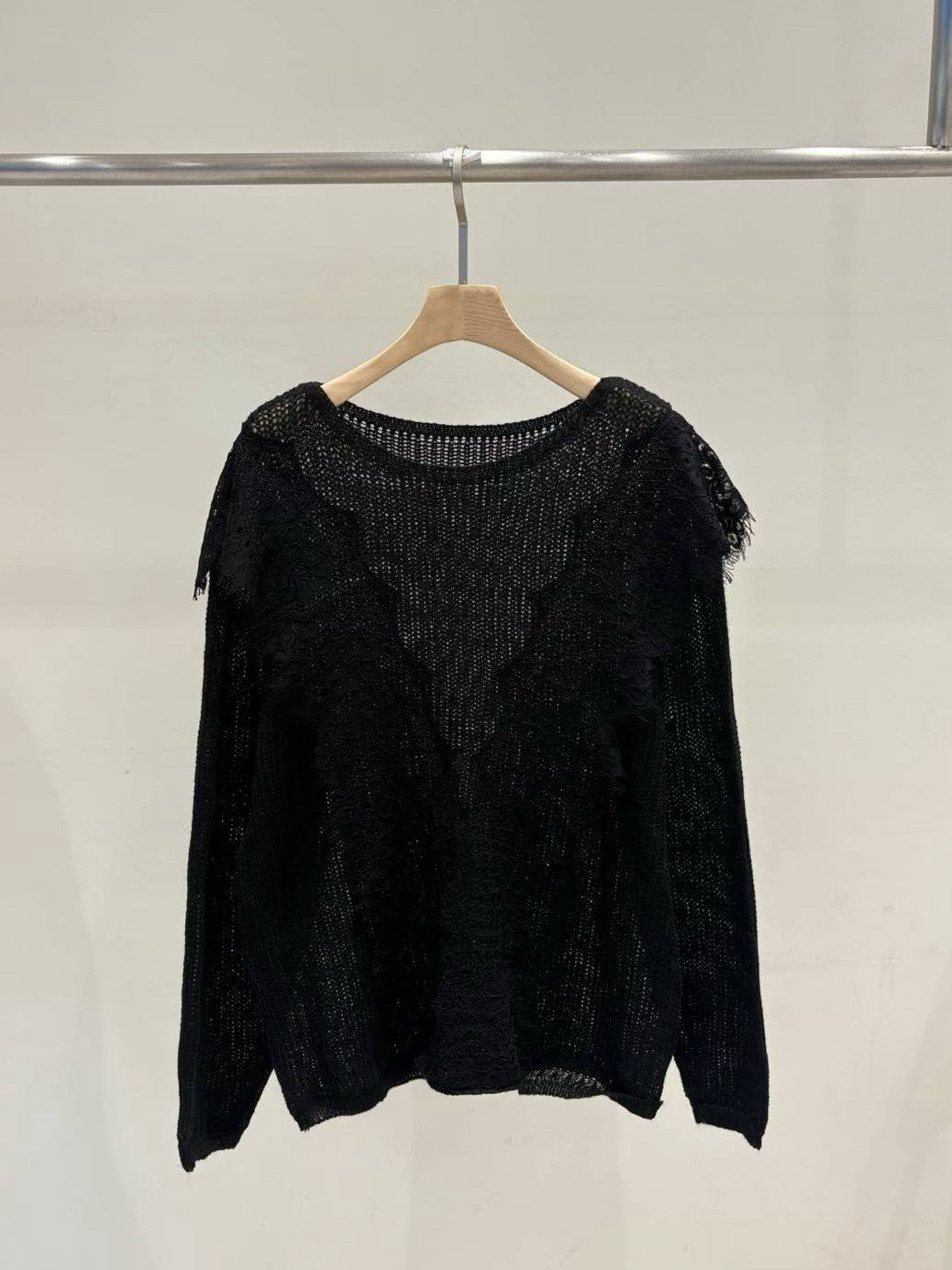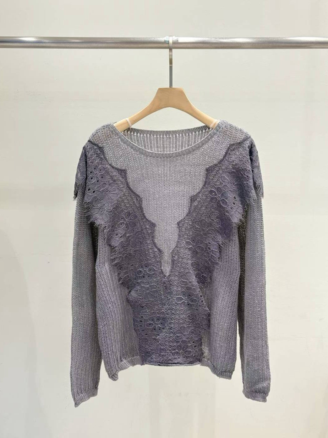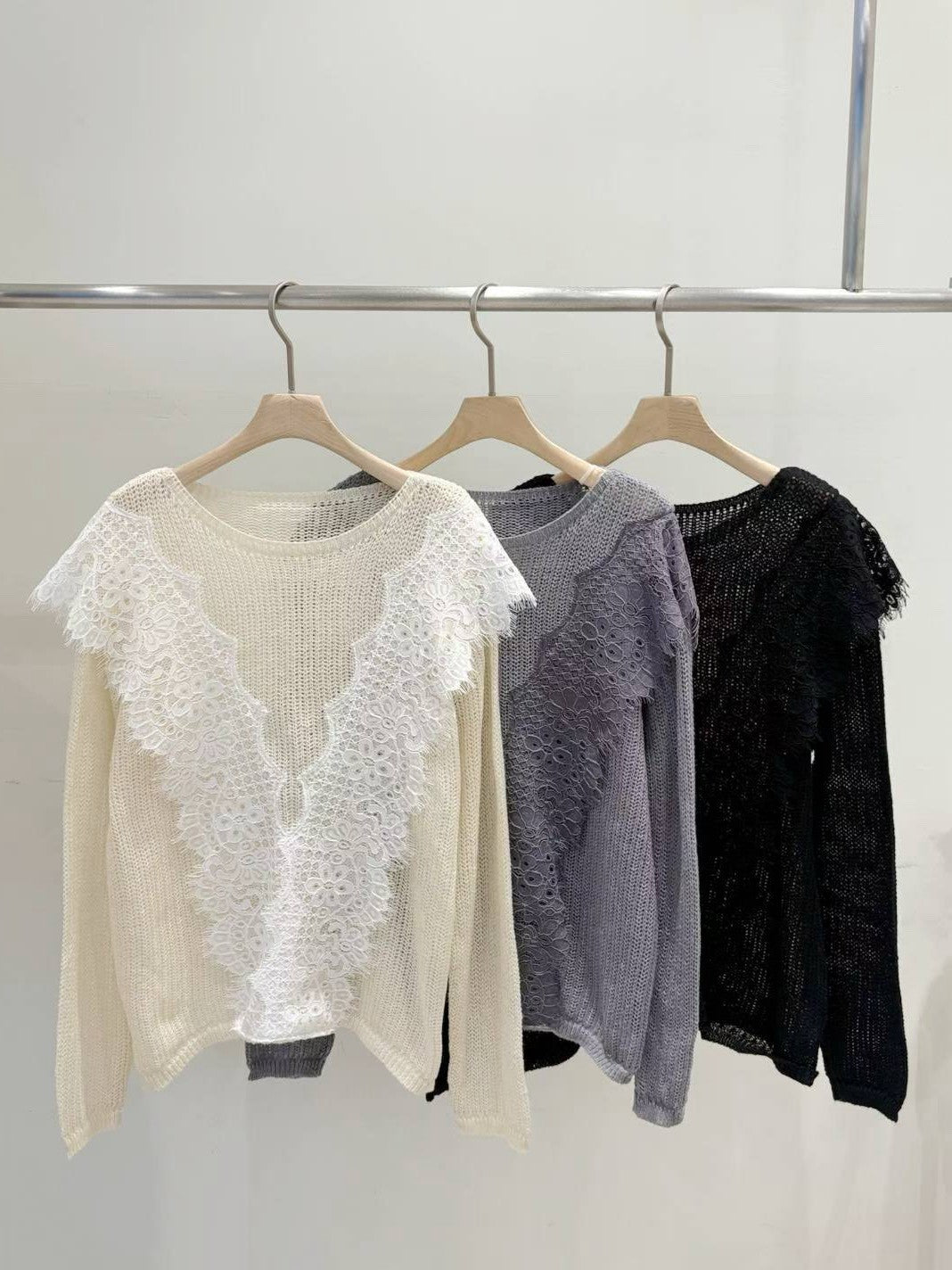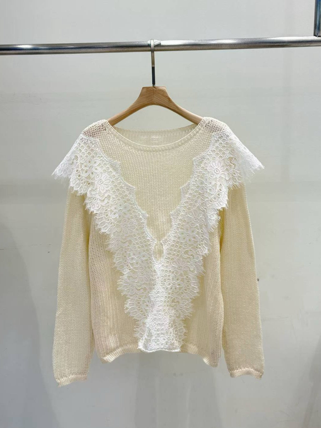 10B115 大V蕾絲圓領針織衫