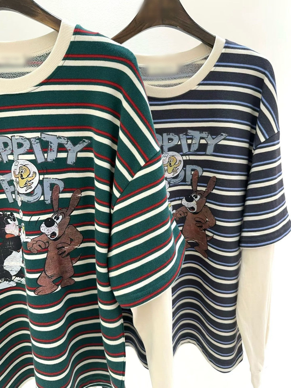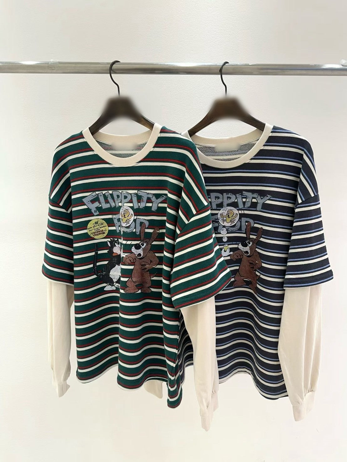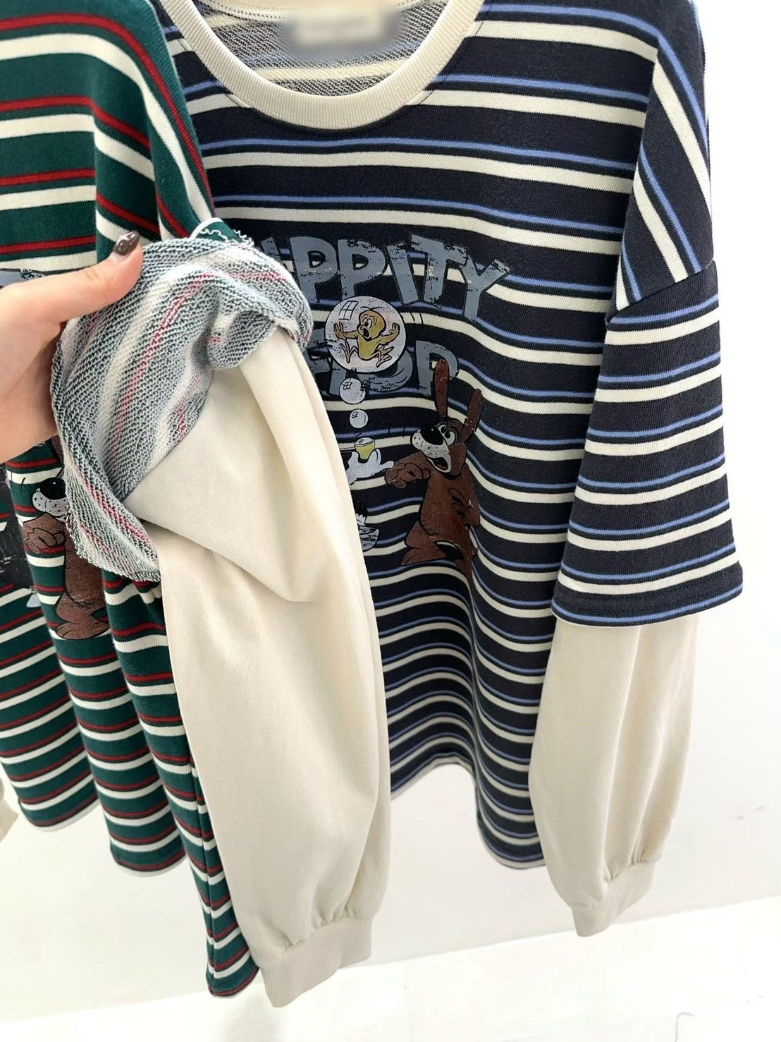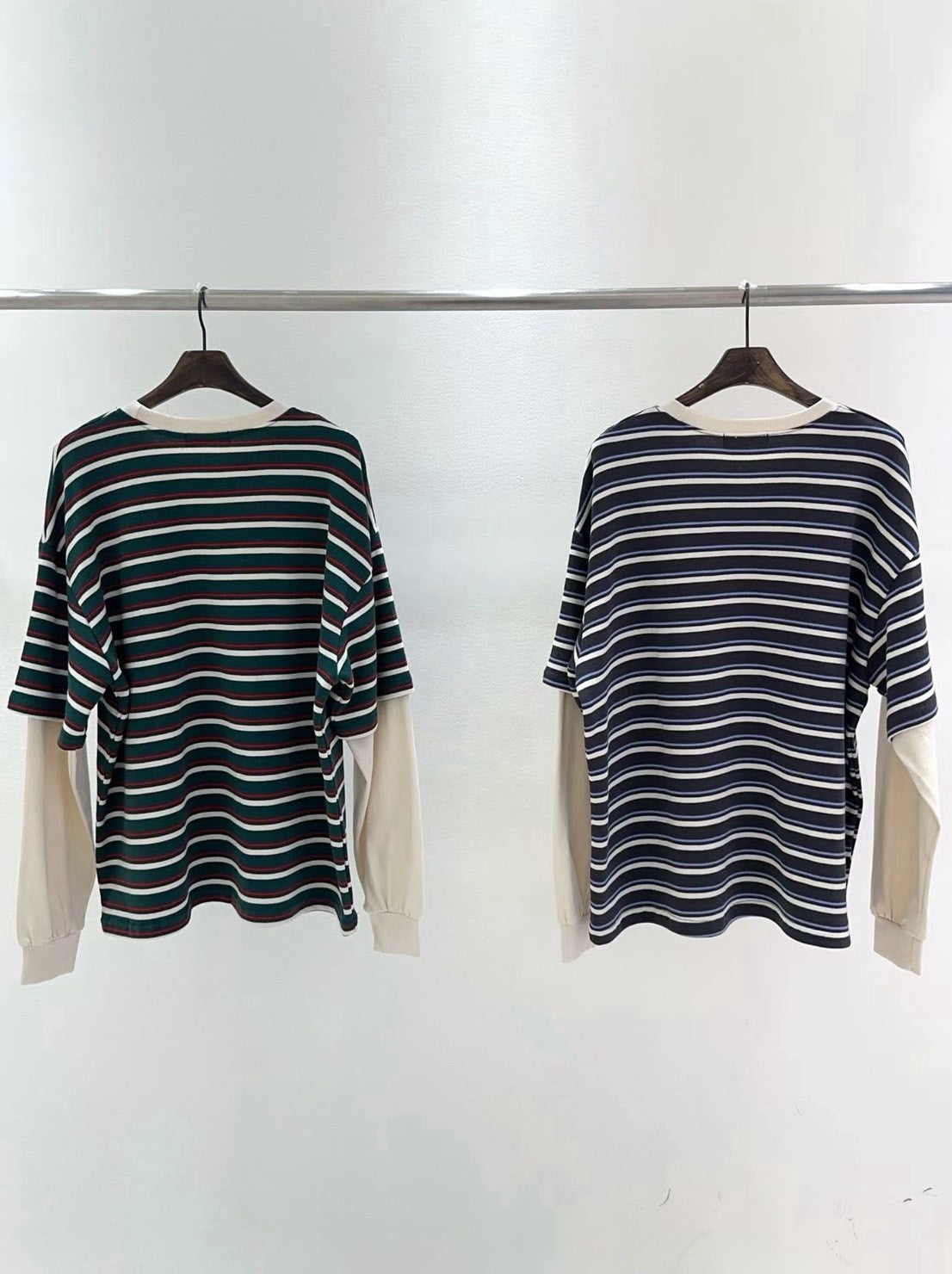 10B213 橫條短T假兩件上衣