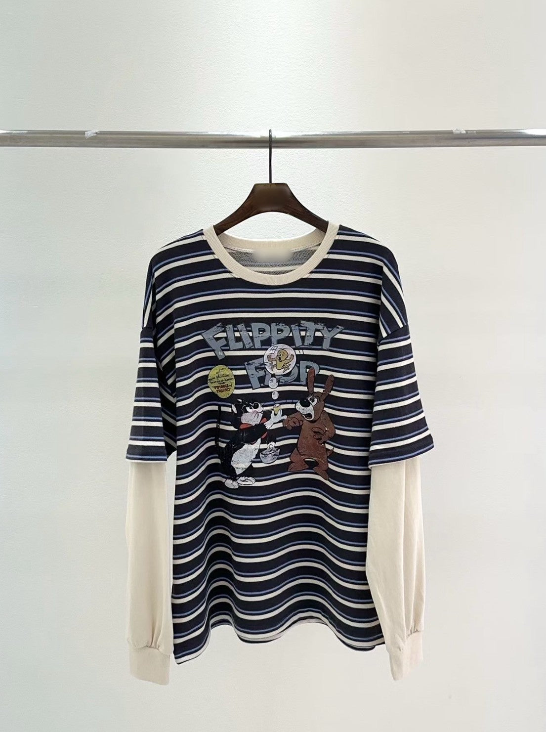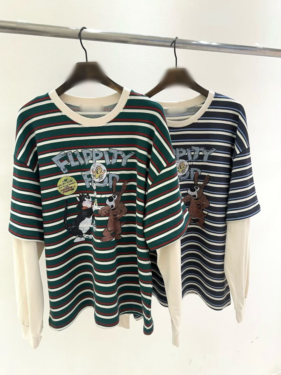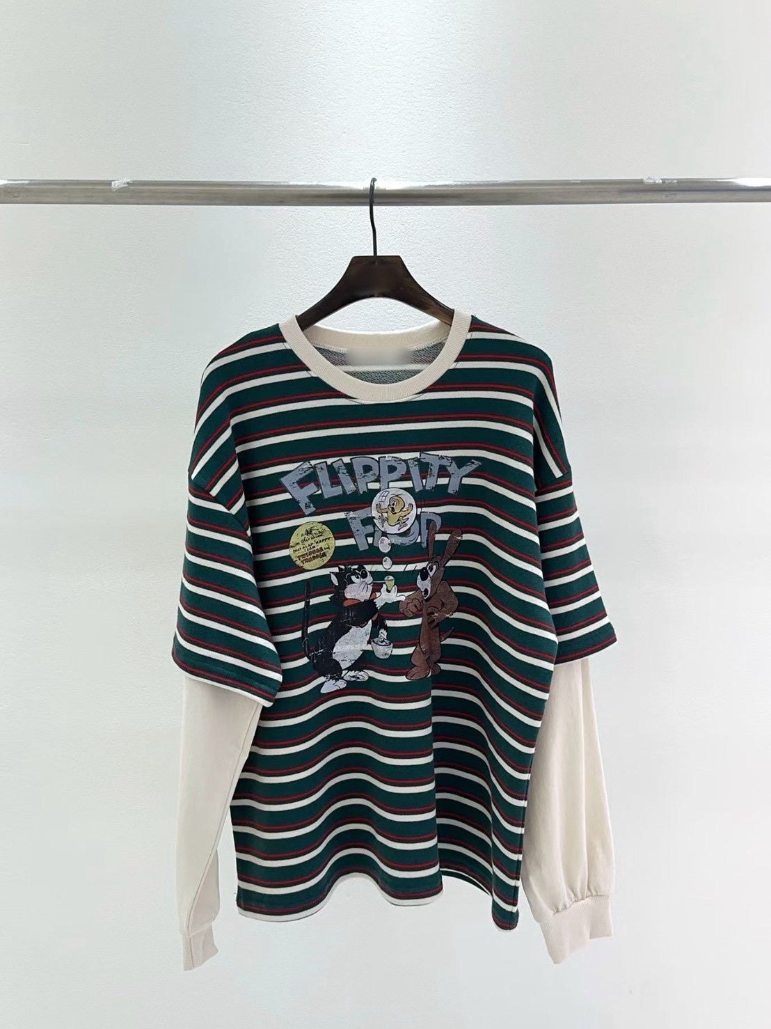 10B213 橫條短T假兩件上衣