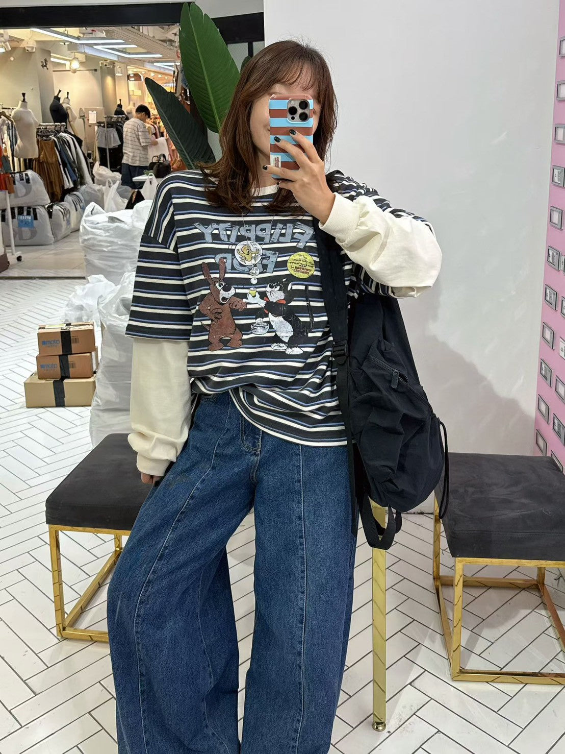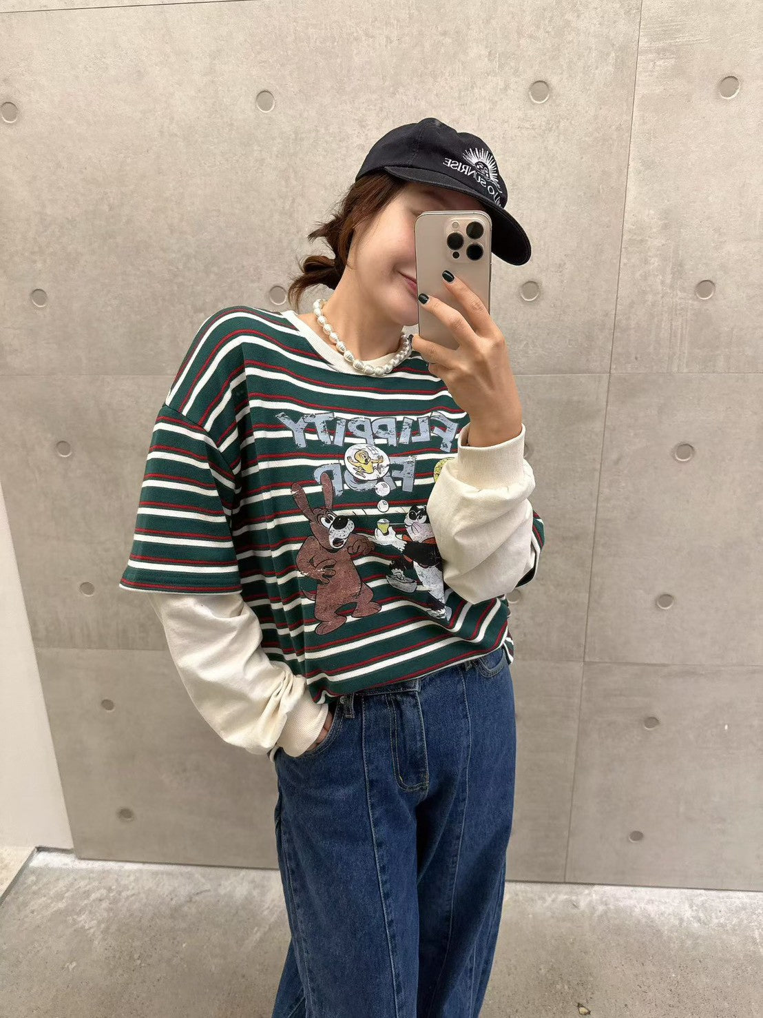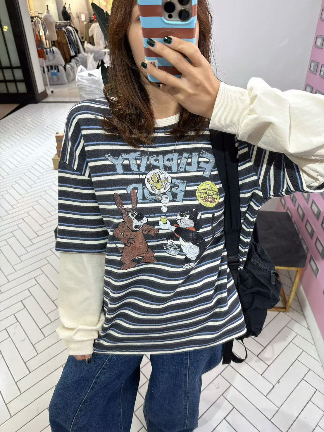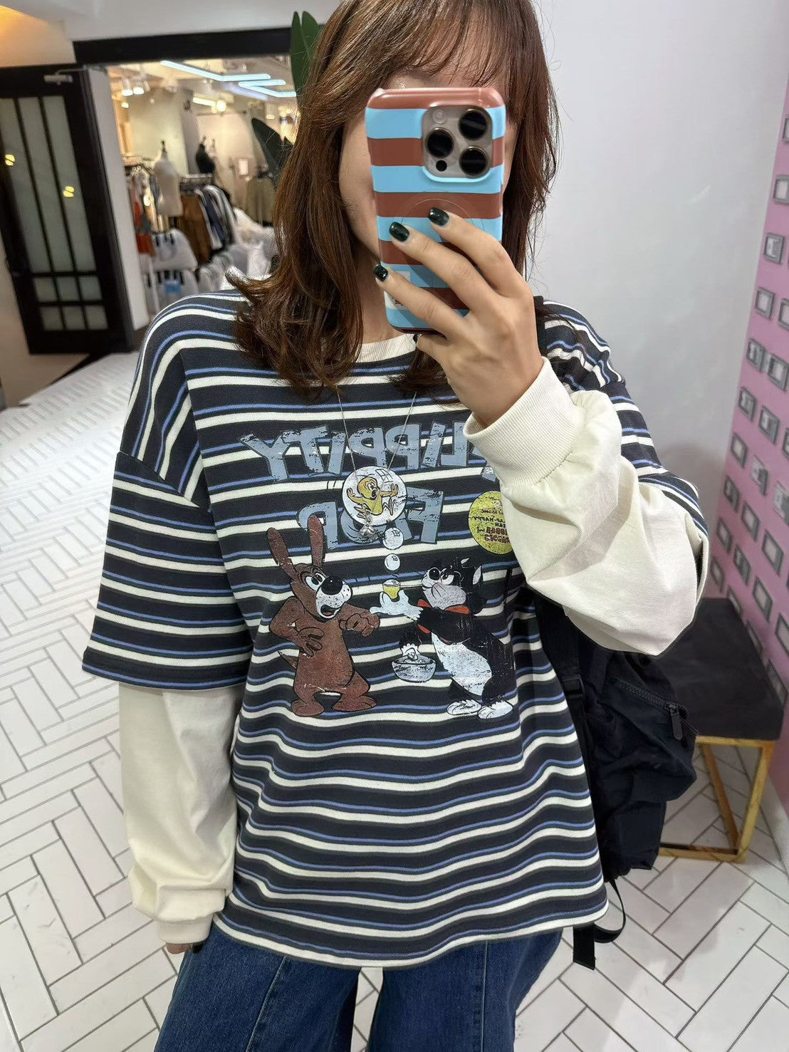 10B213 橫條短T假兩件上衣