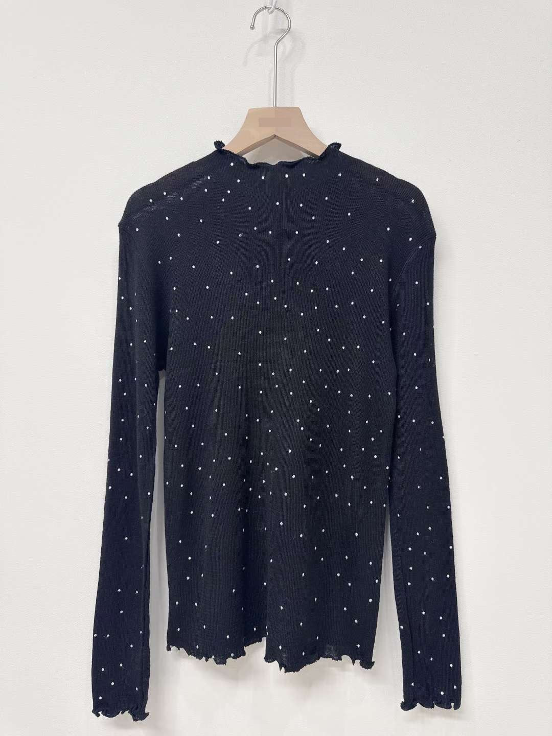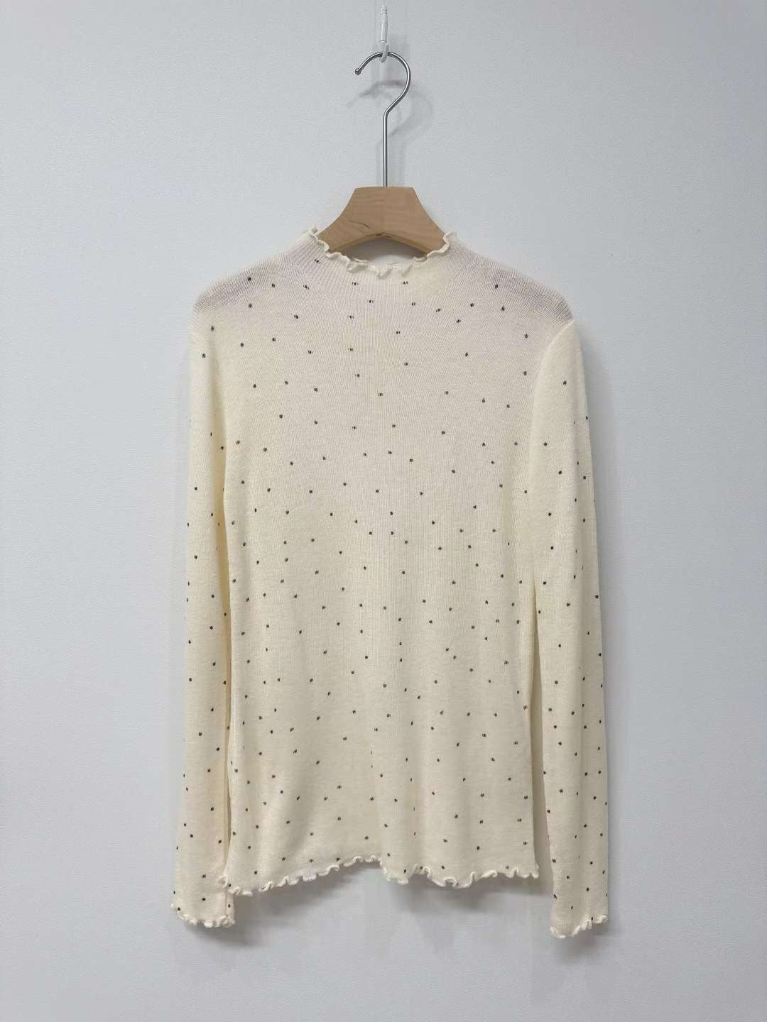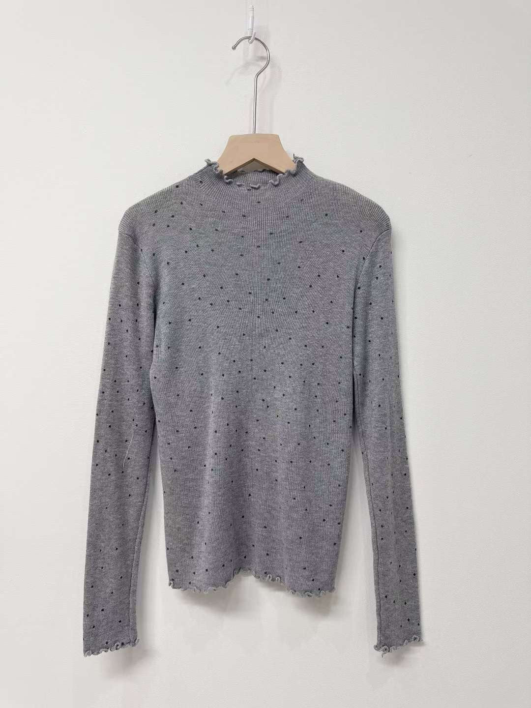 10D105 點點木耳邊針織上衣