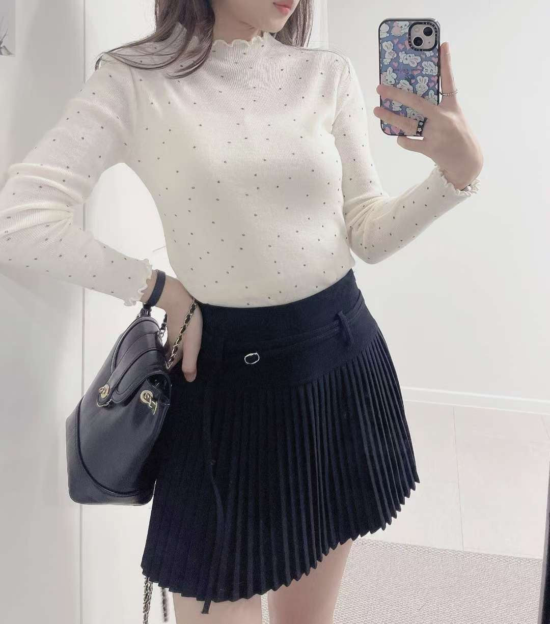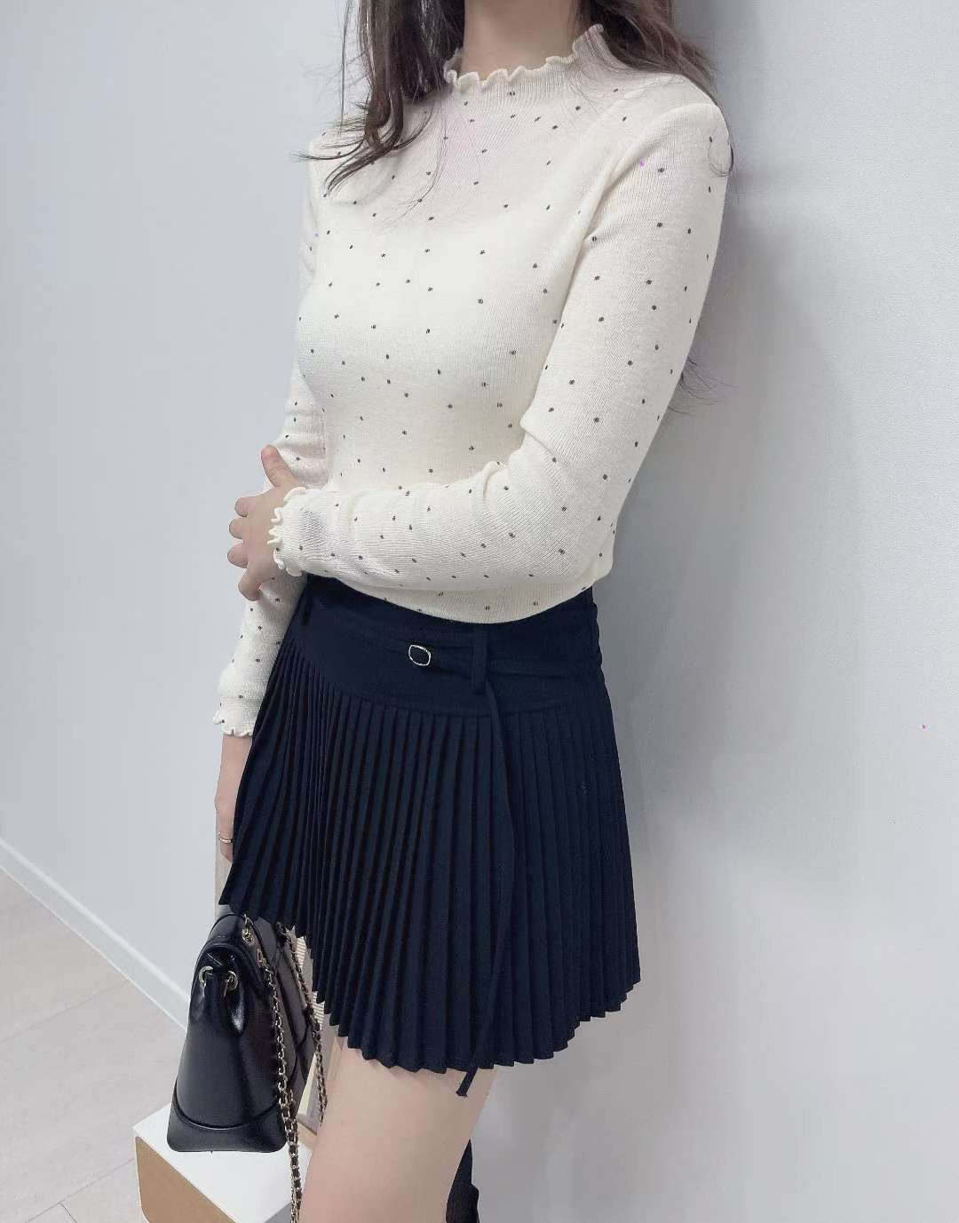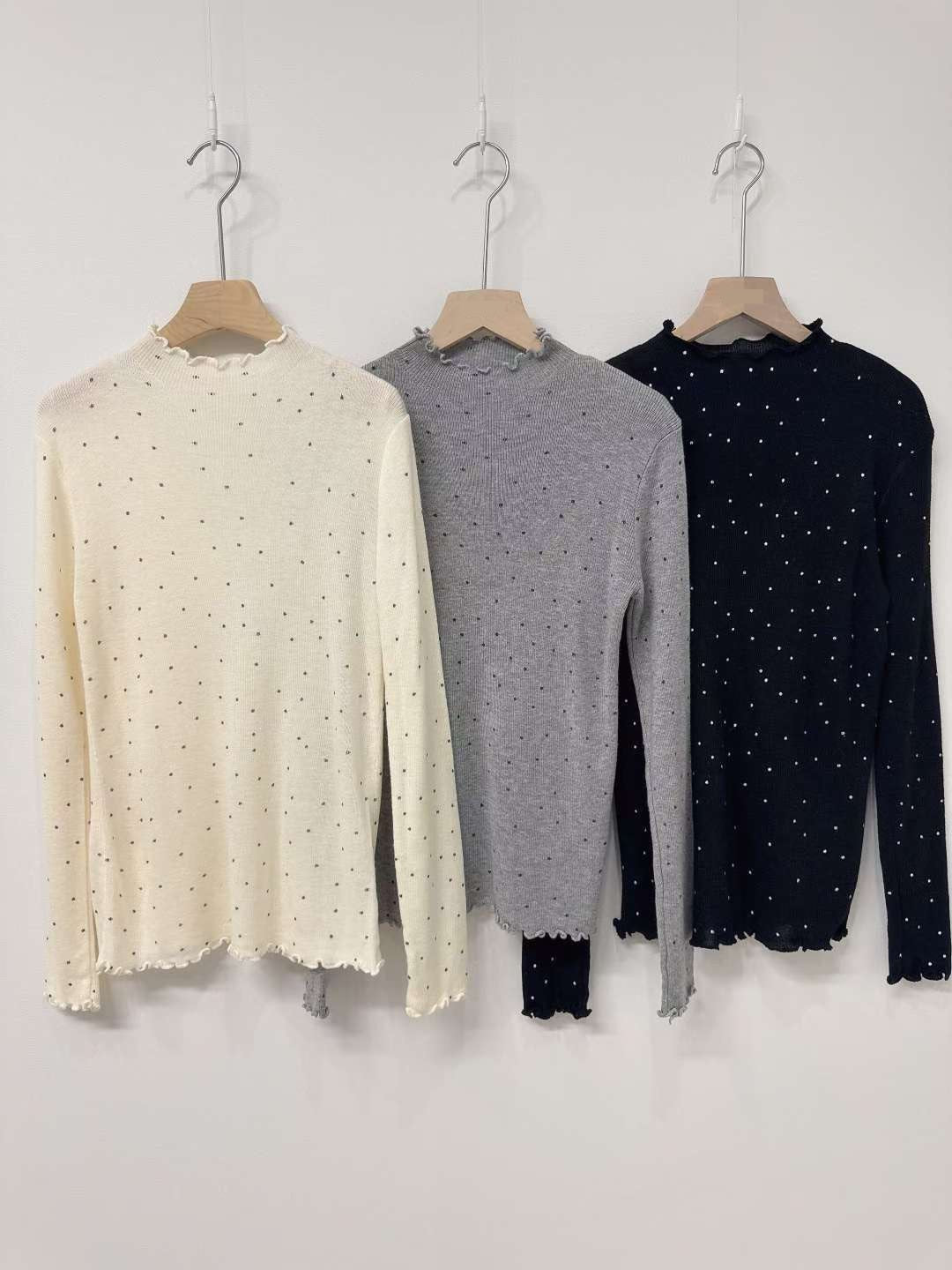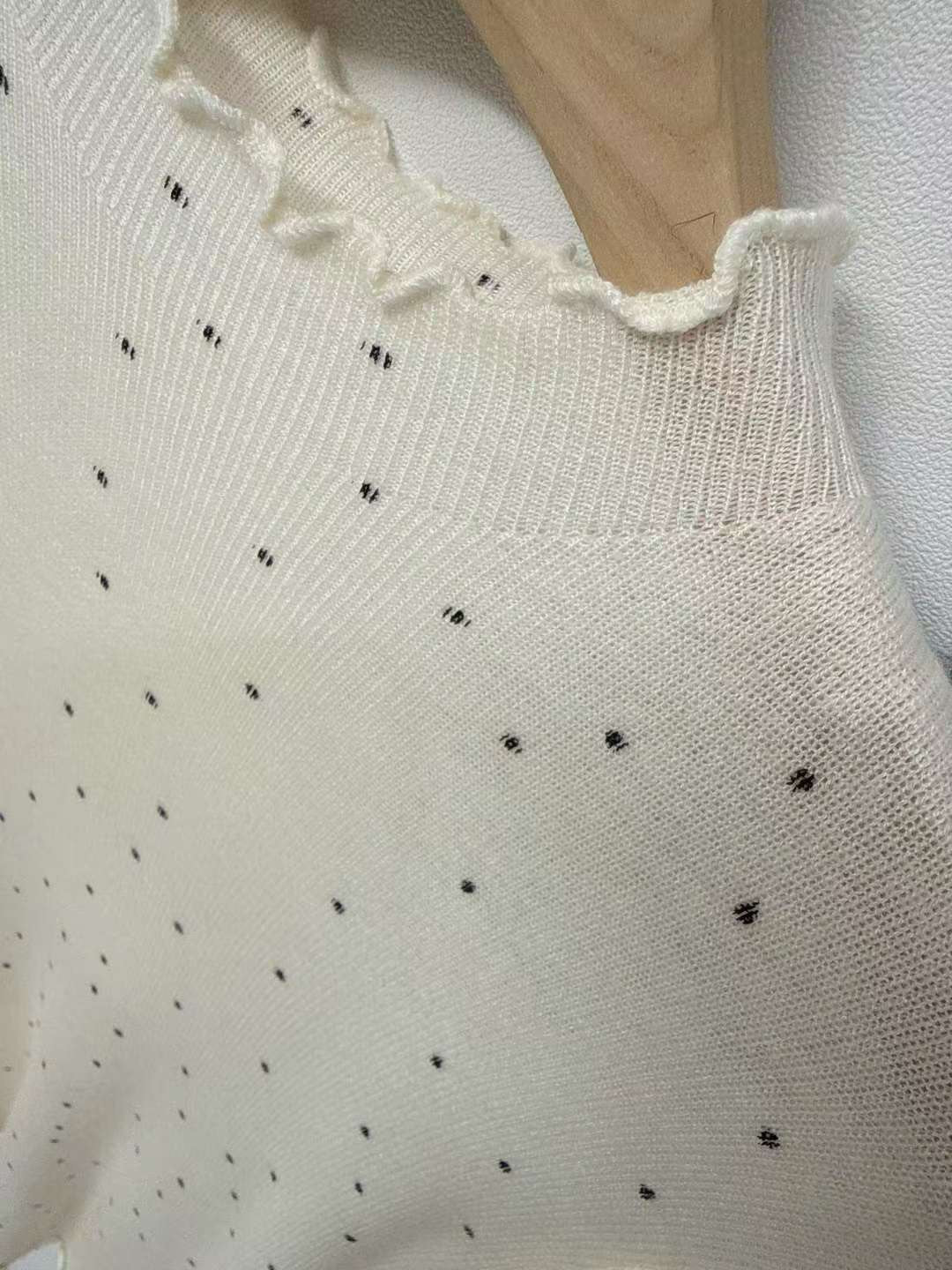 10D105 點點木耳邊針織上衣