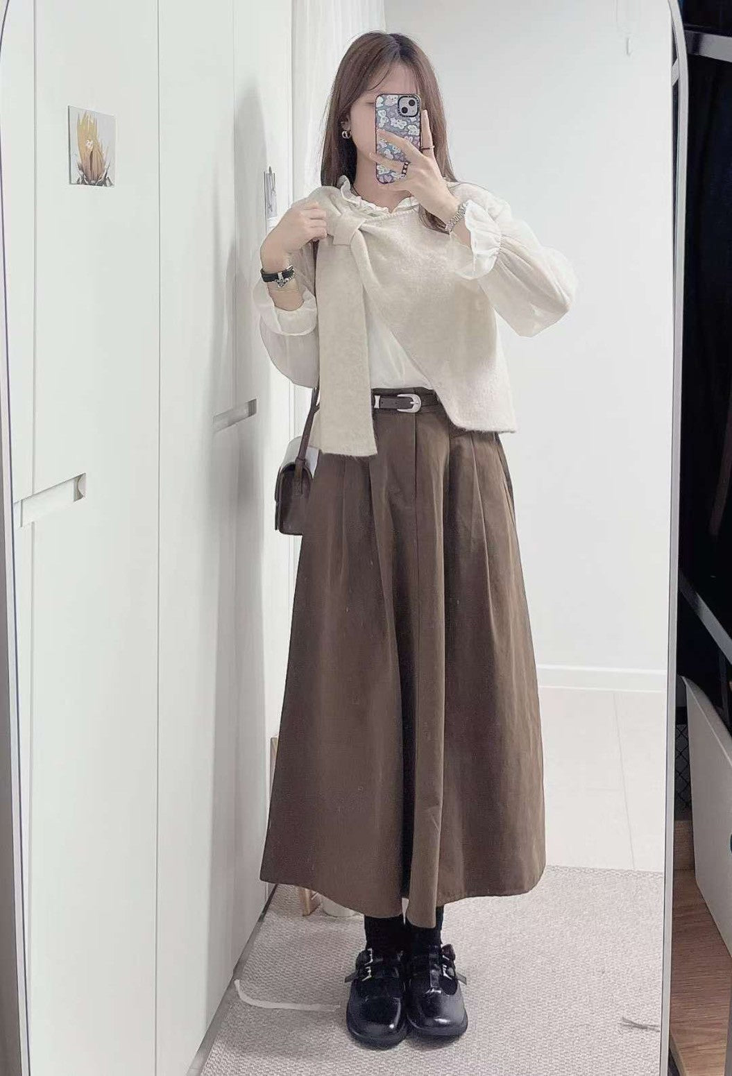 10D108 皮帶+長A字裙(後鬆緊腰)