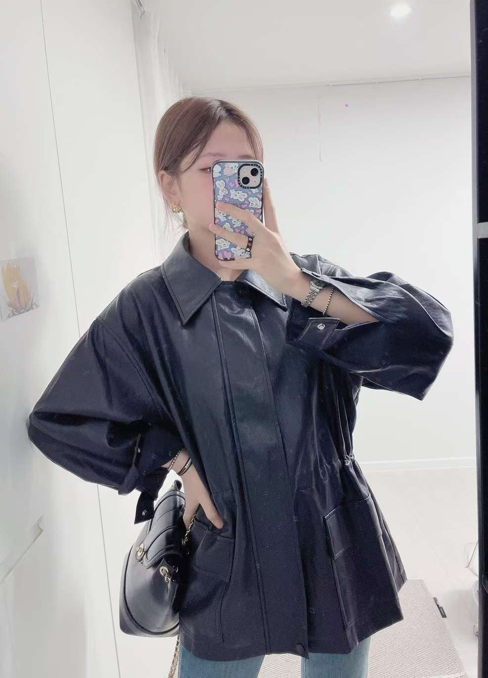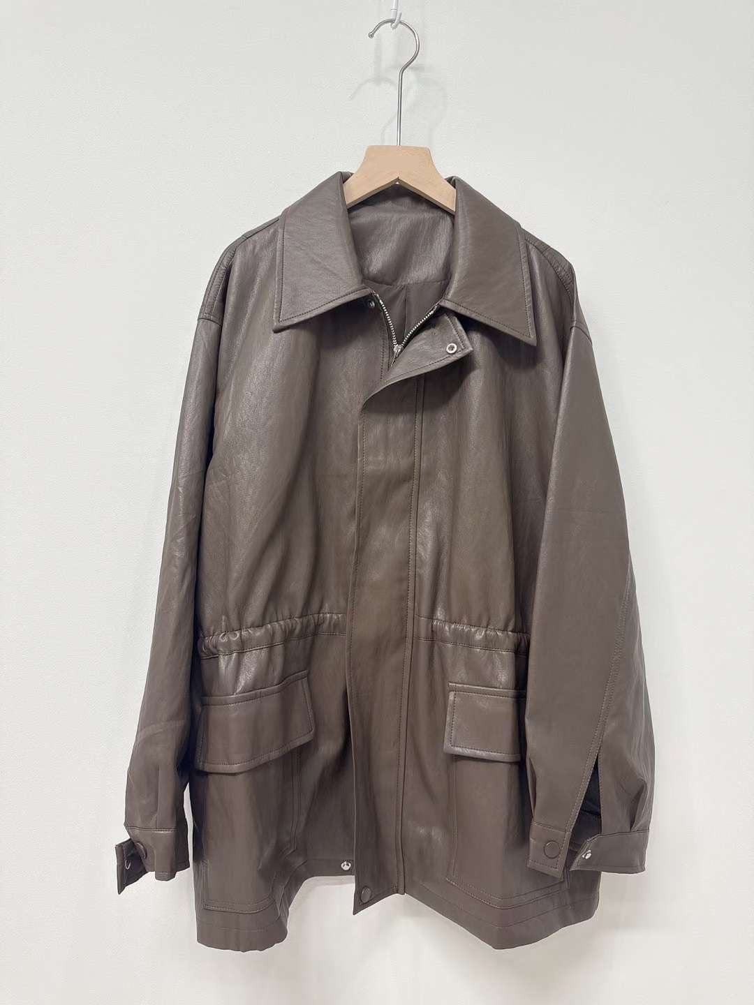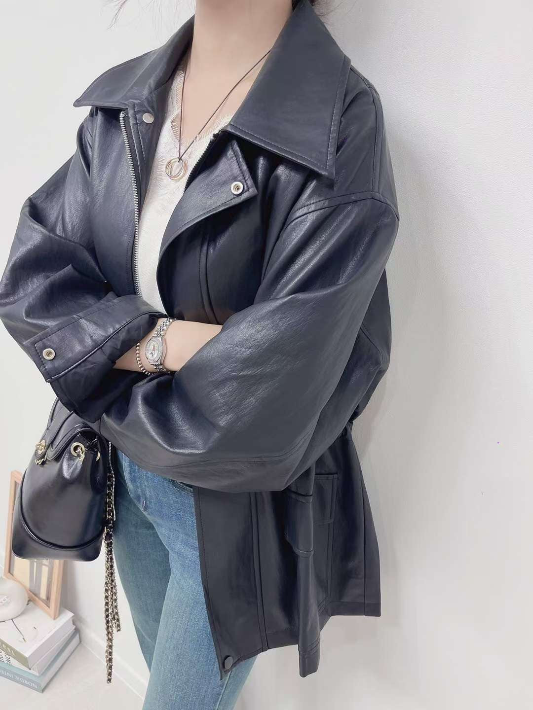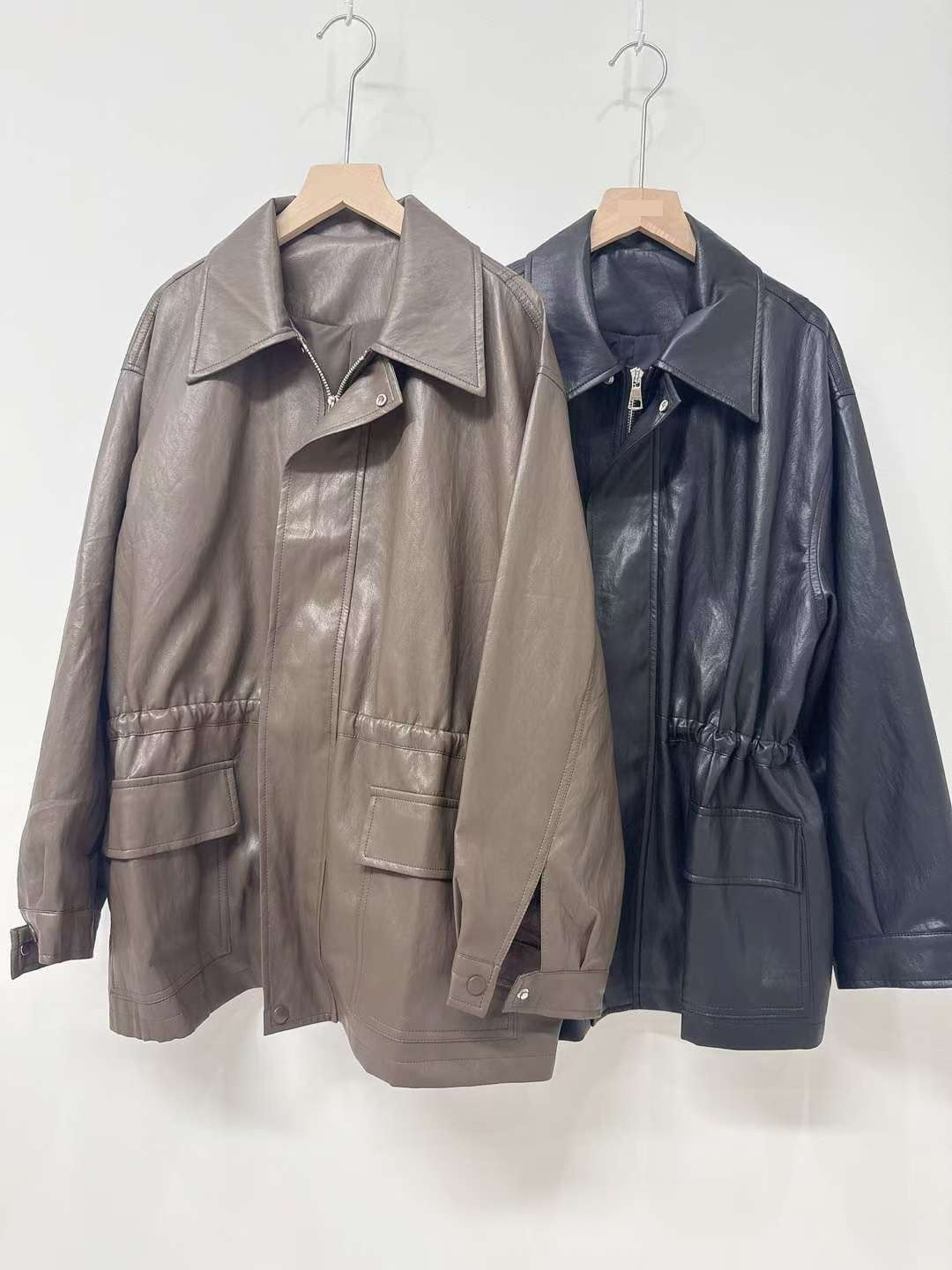 10D121 領子縮腰拉鍊皮外套