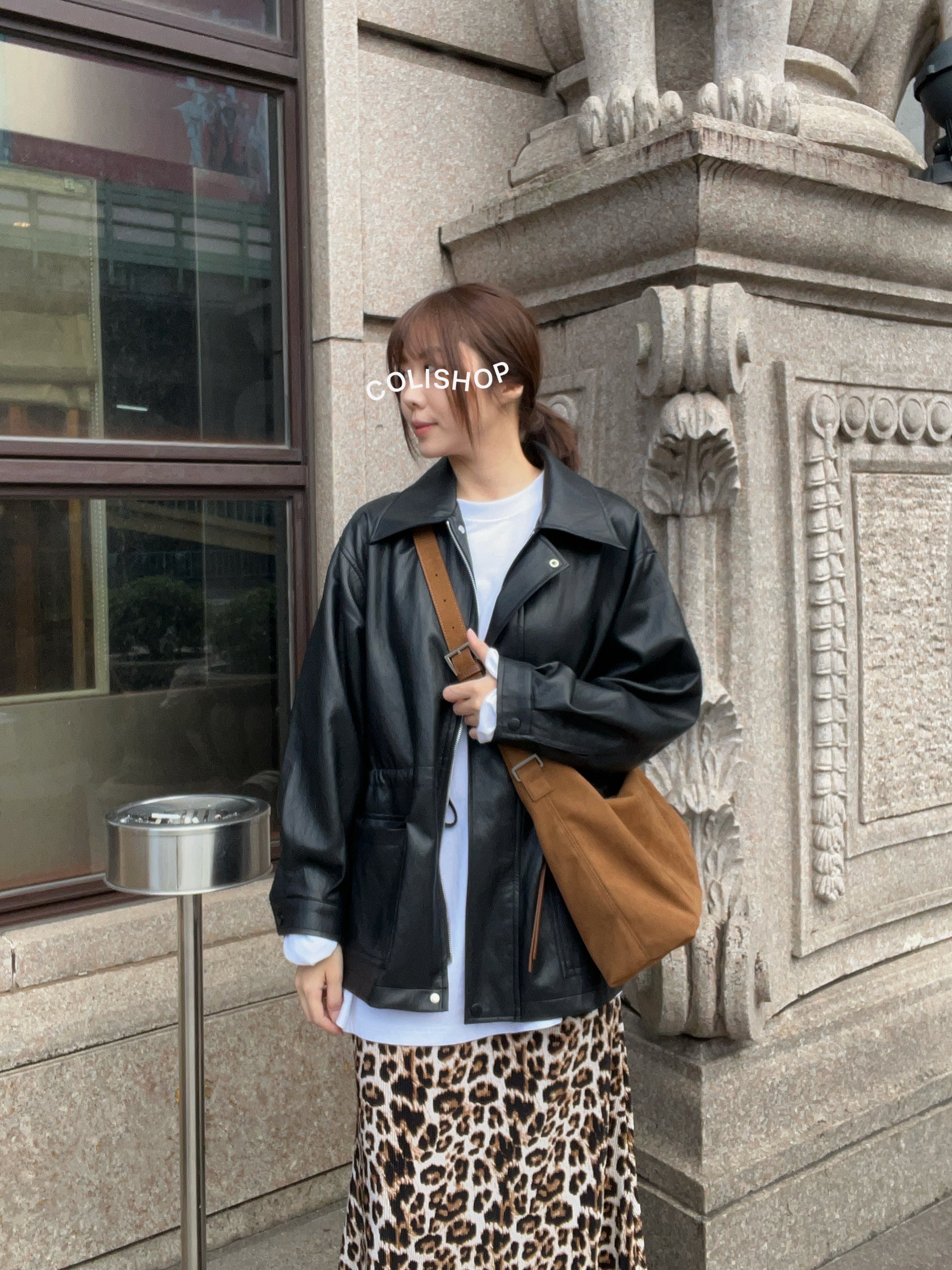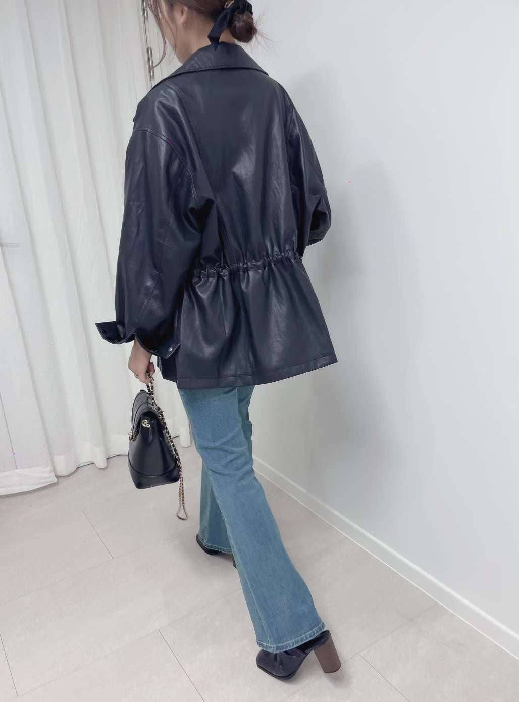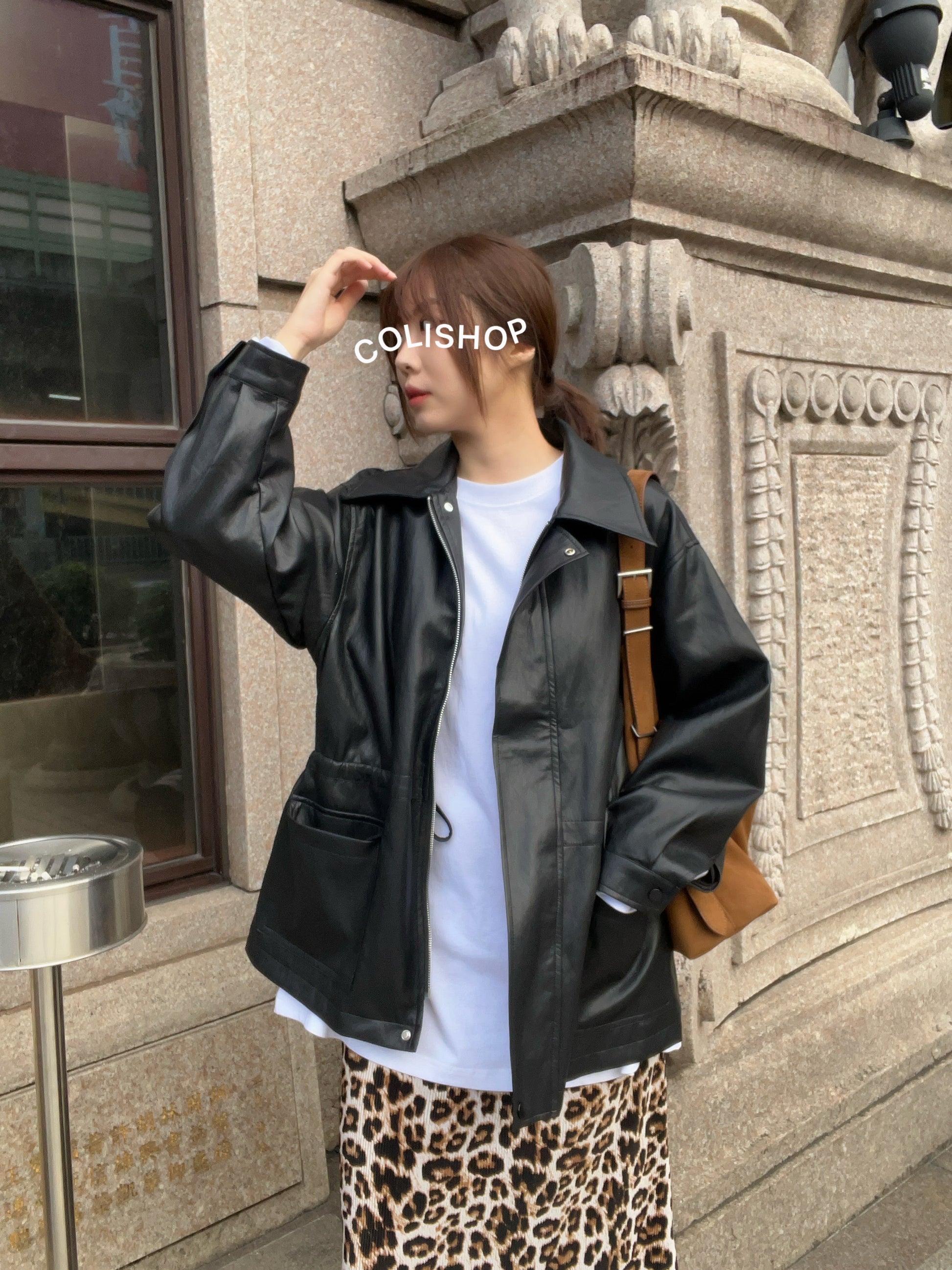 10D121 領子縮腰拉鍊皮外套