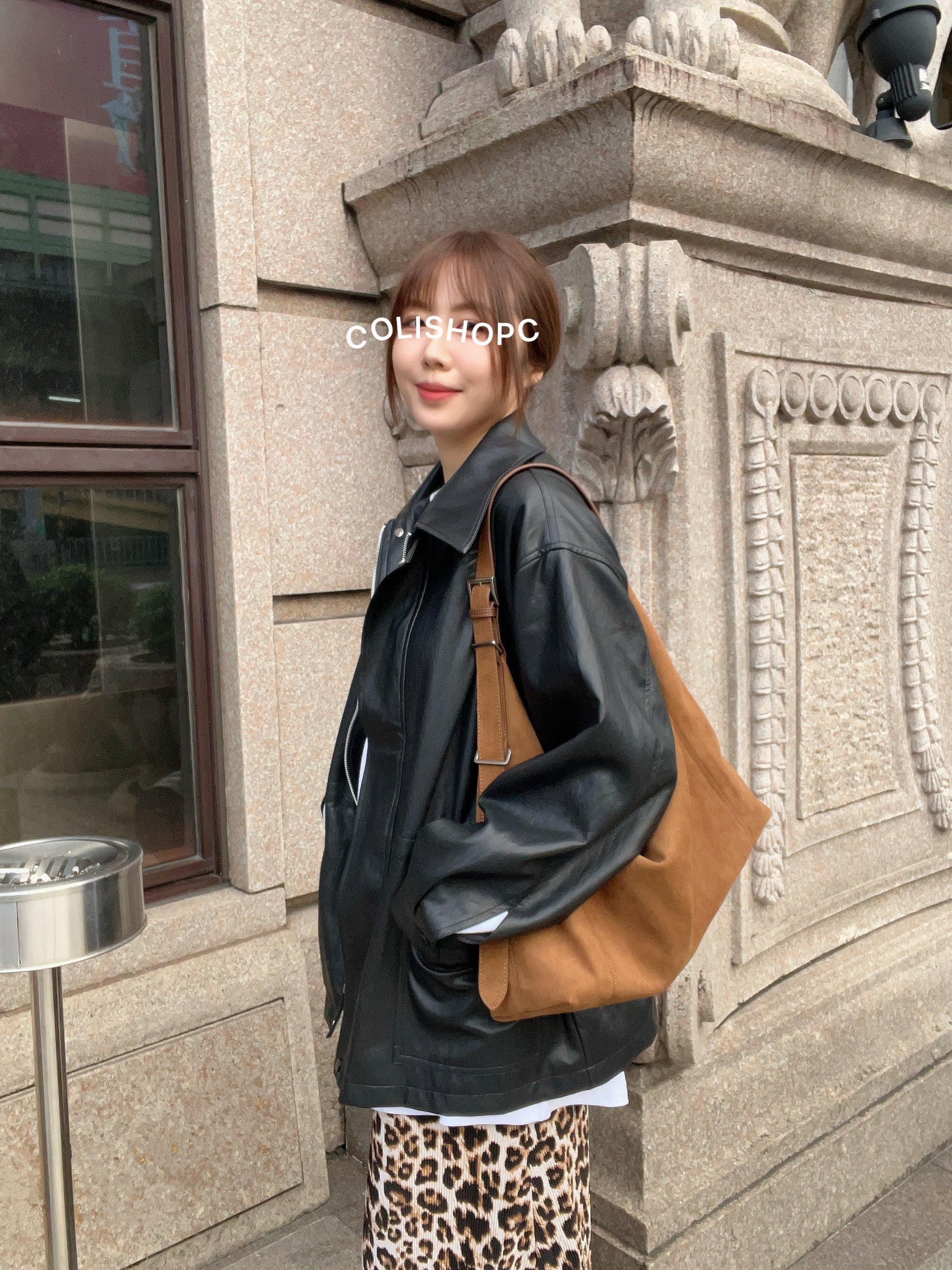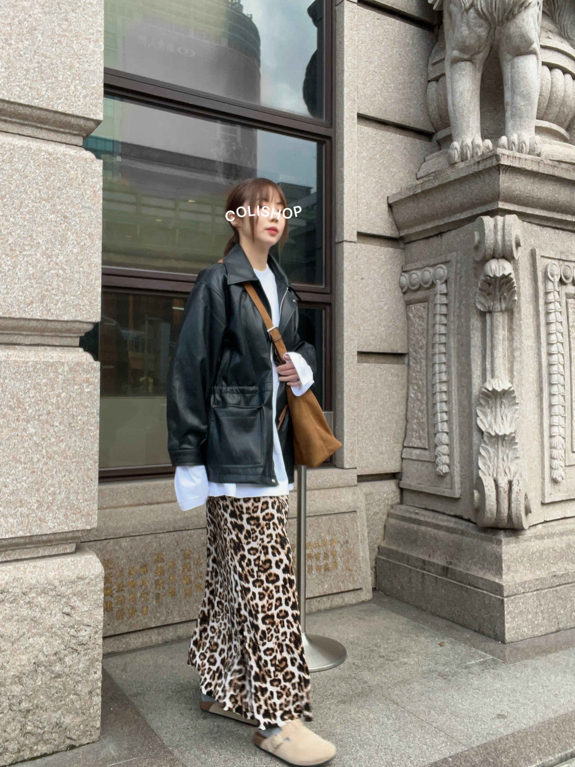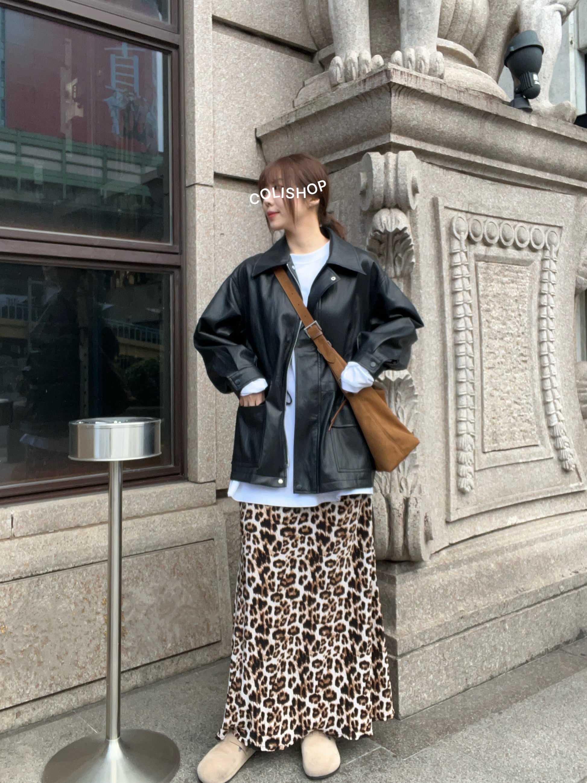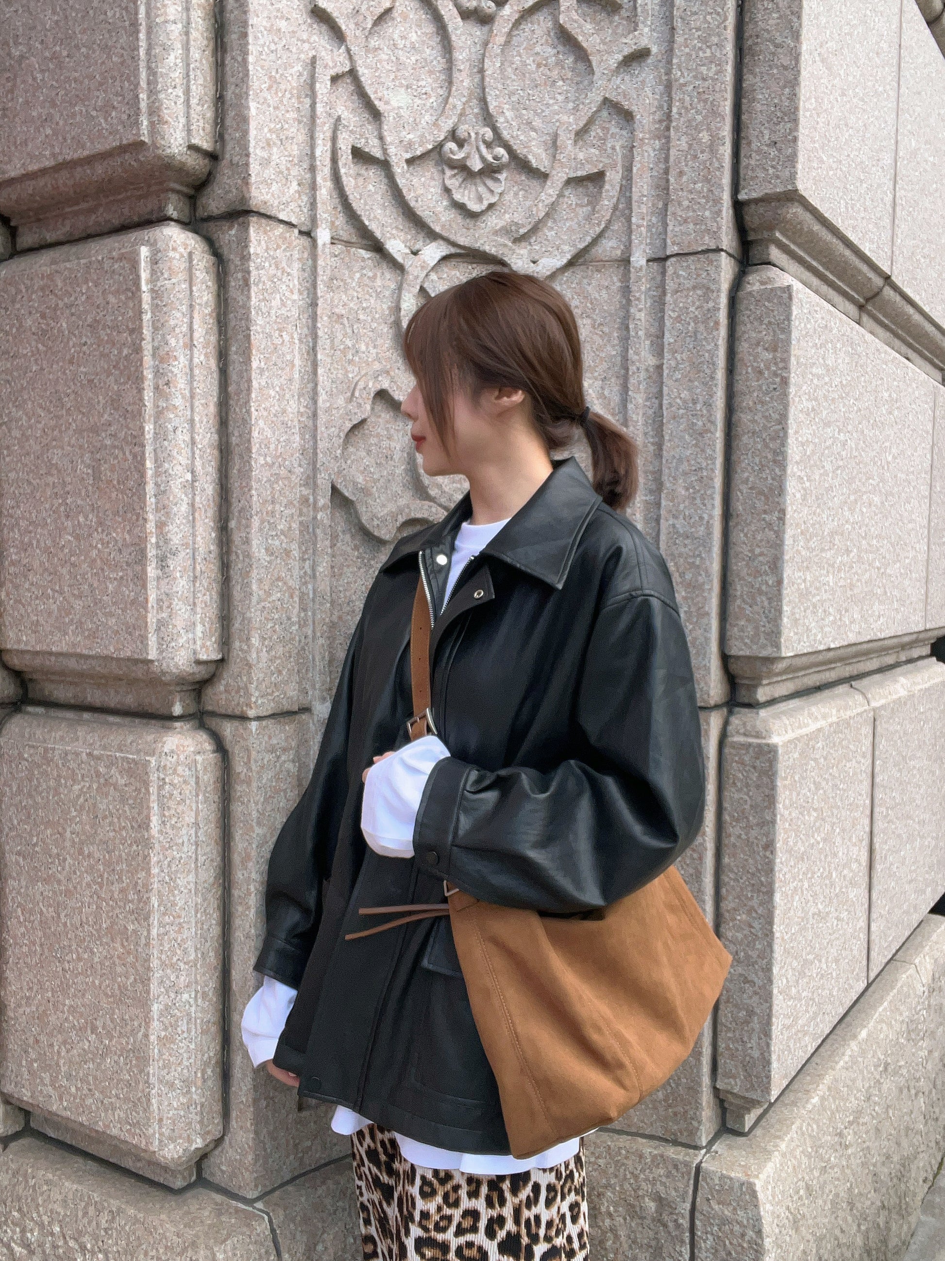 10D121 領子縮腰拉鍊皮外套