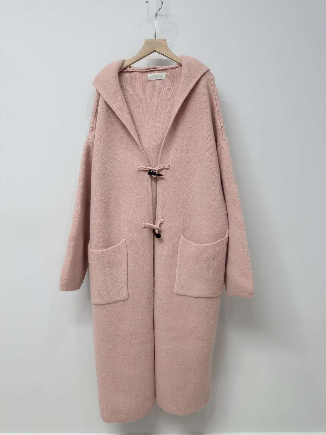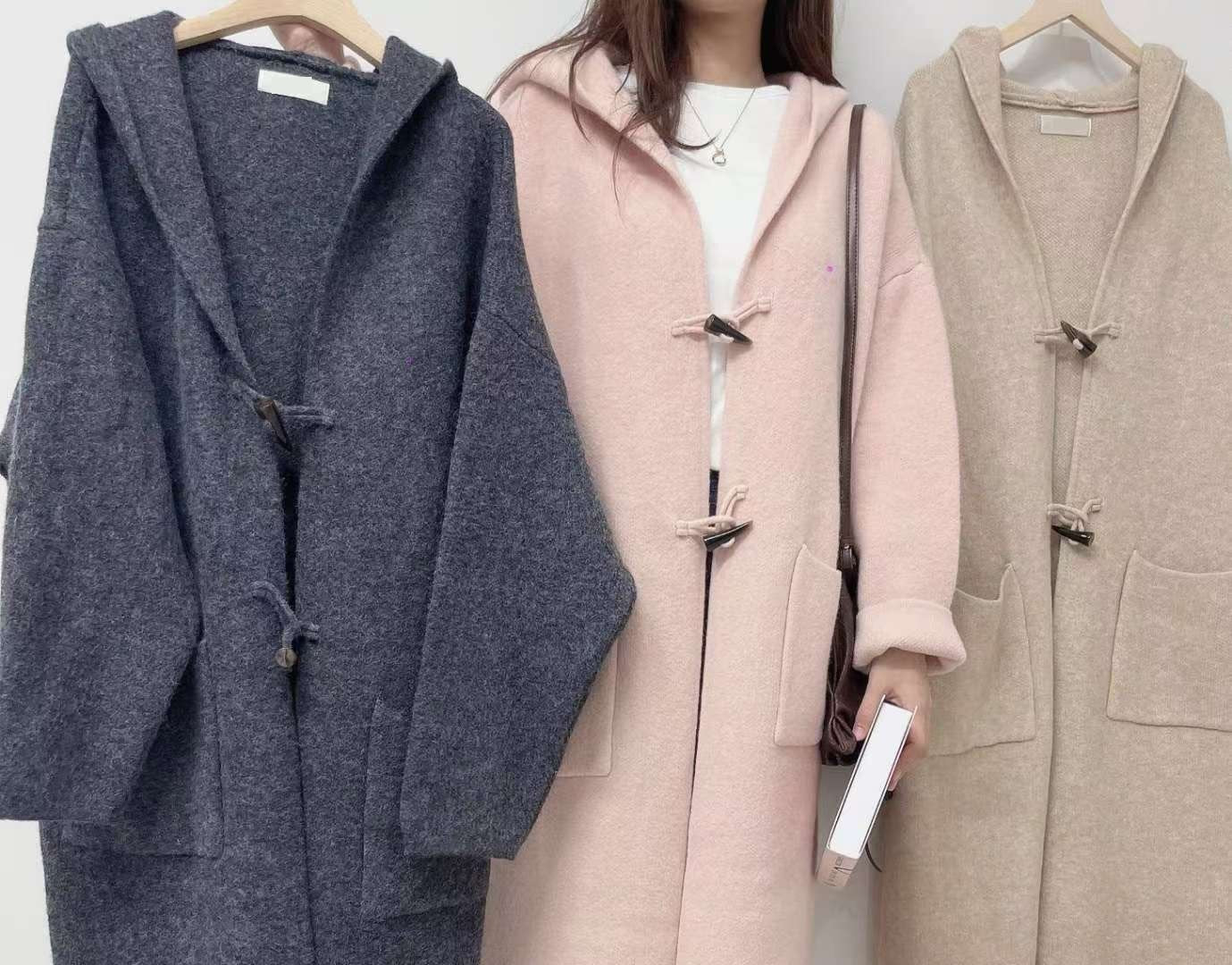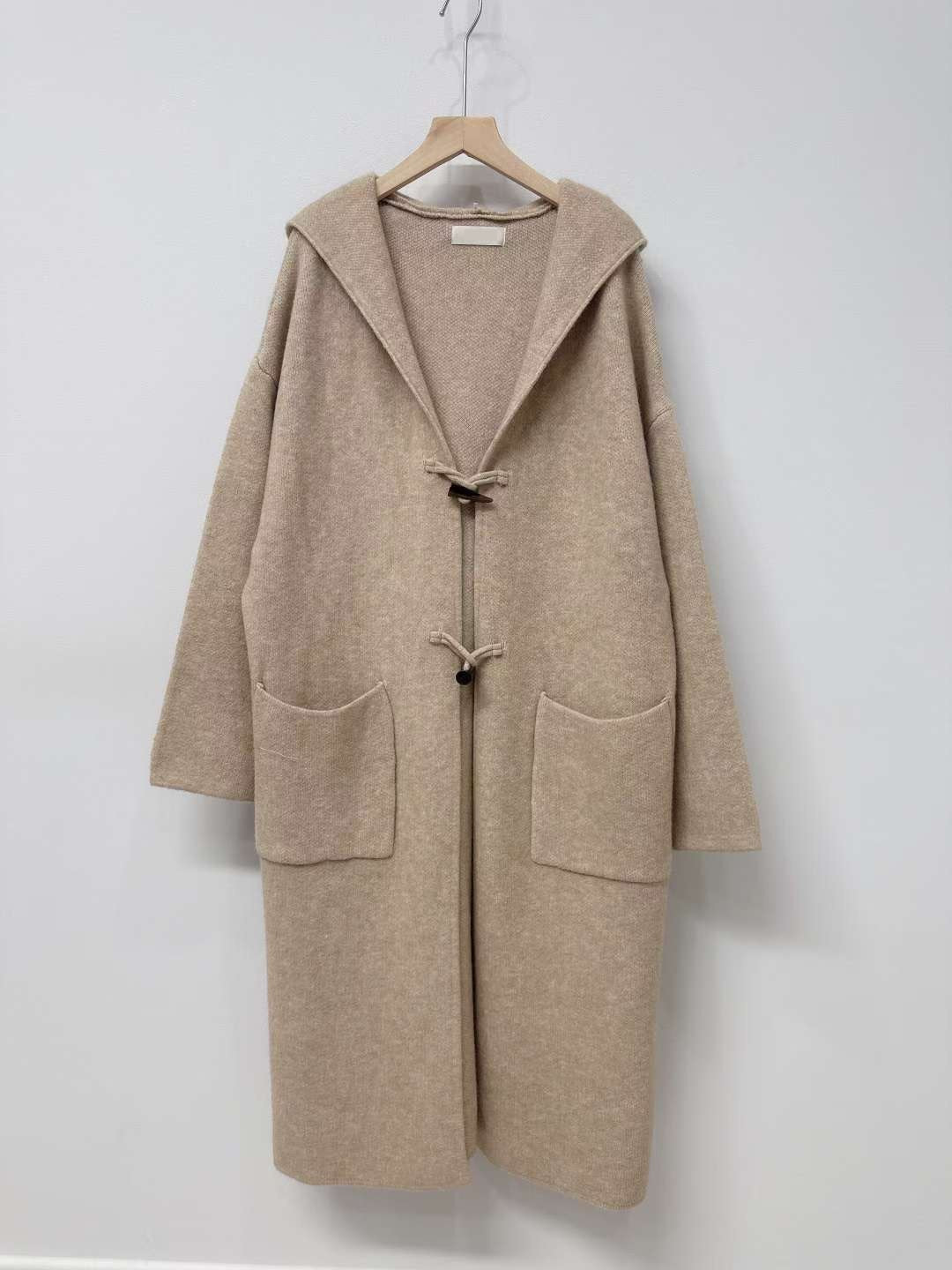 10D125 連帽牛角扣針織長外套