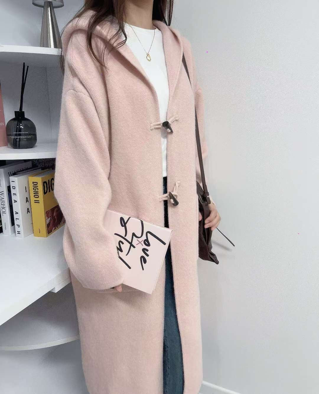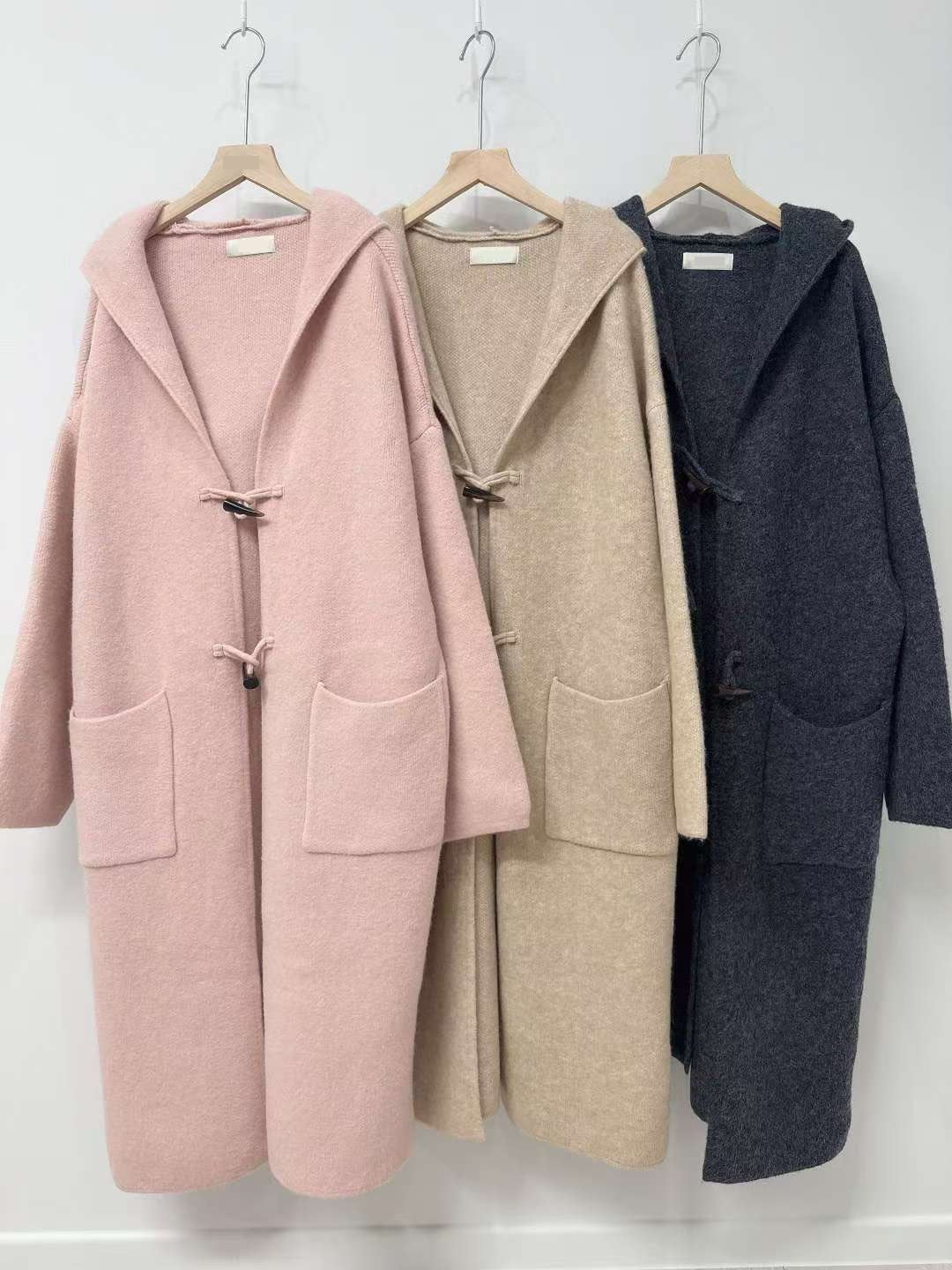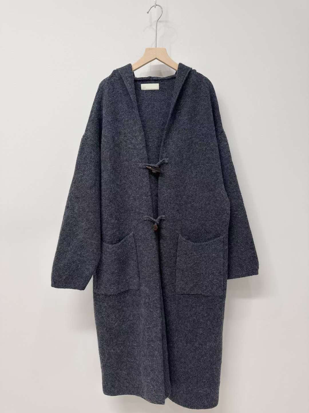 10D125 連帽牛角扣針織長外套