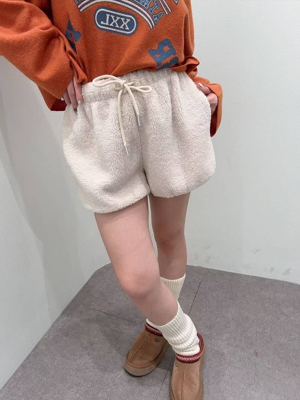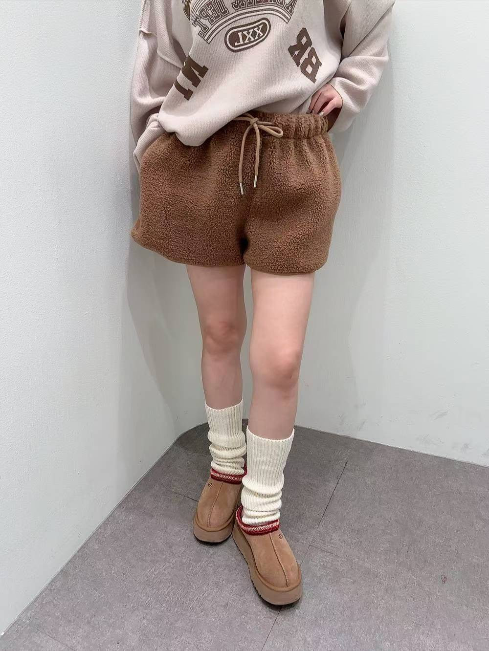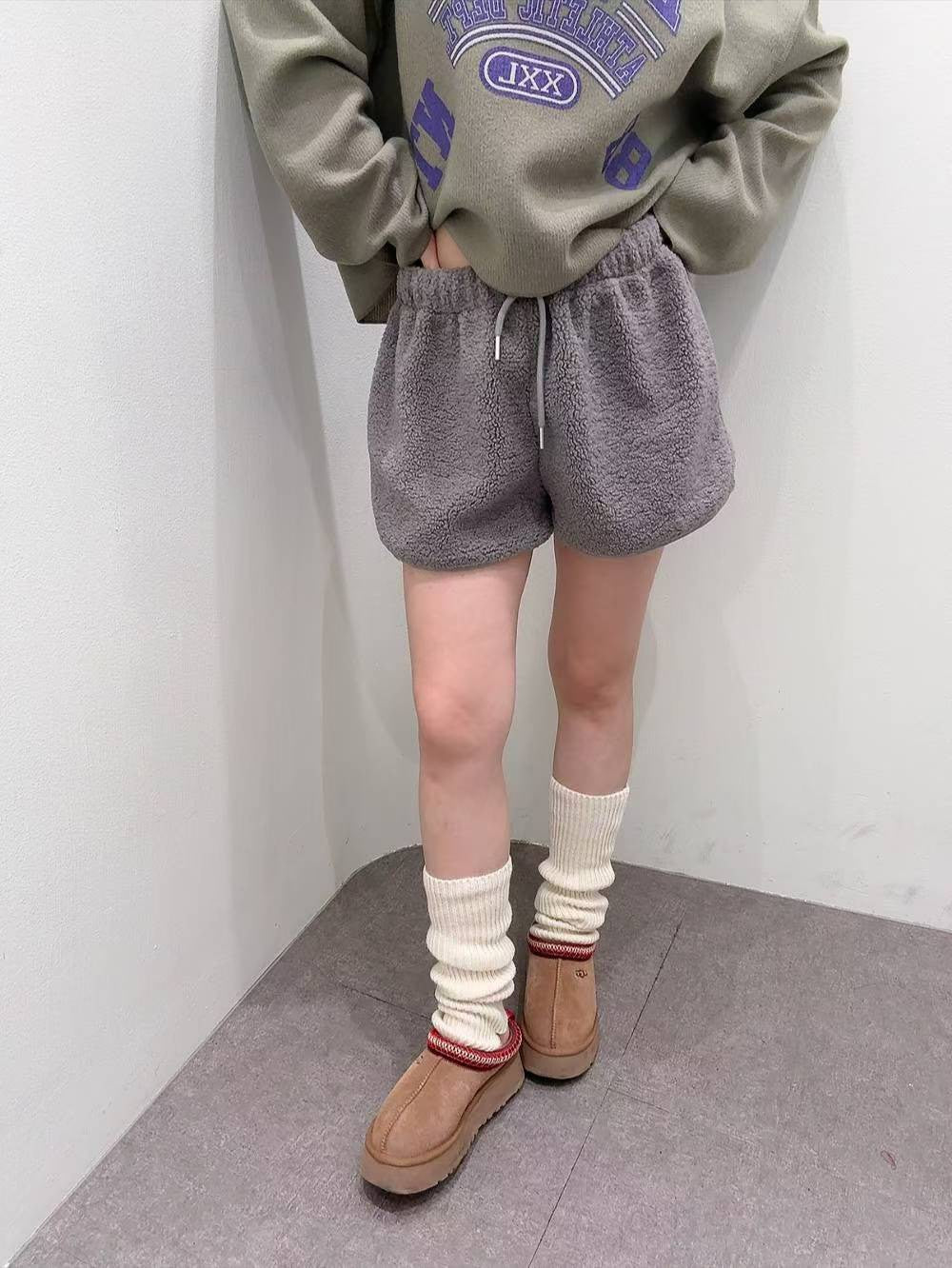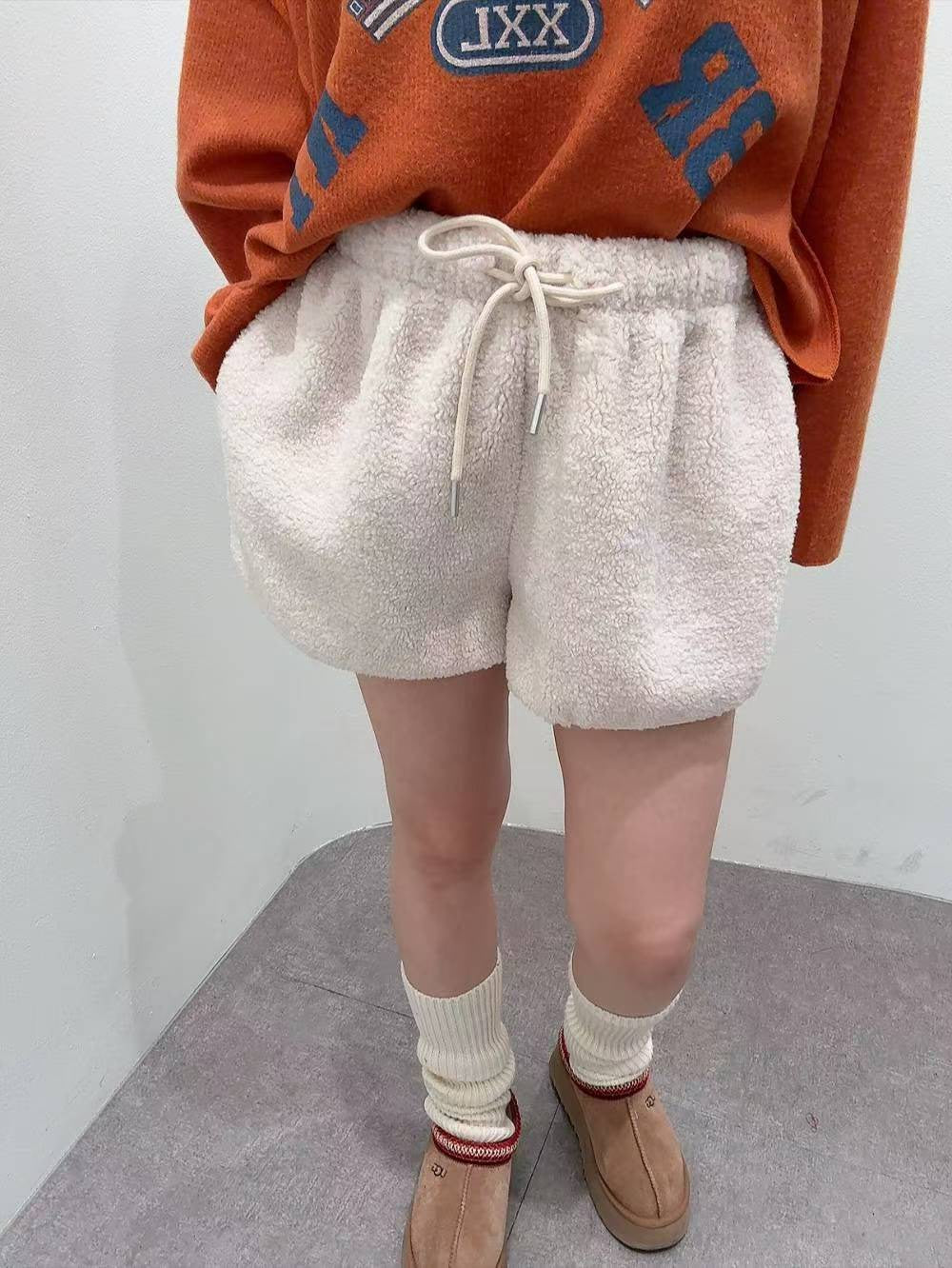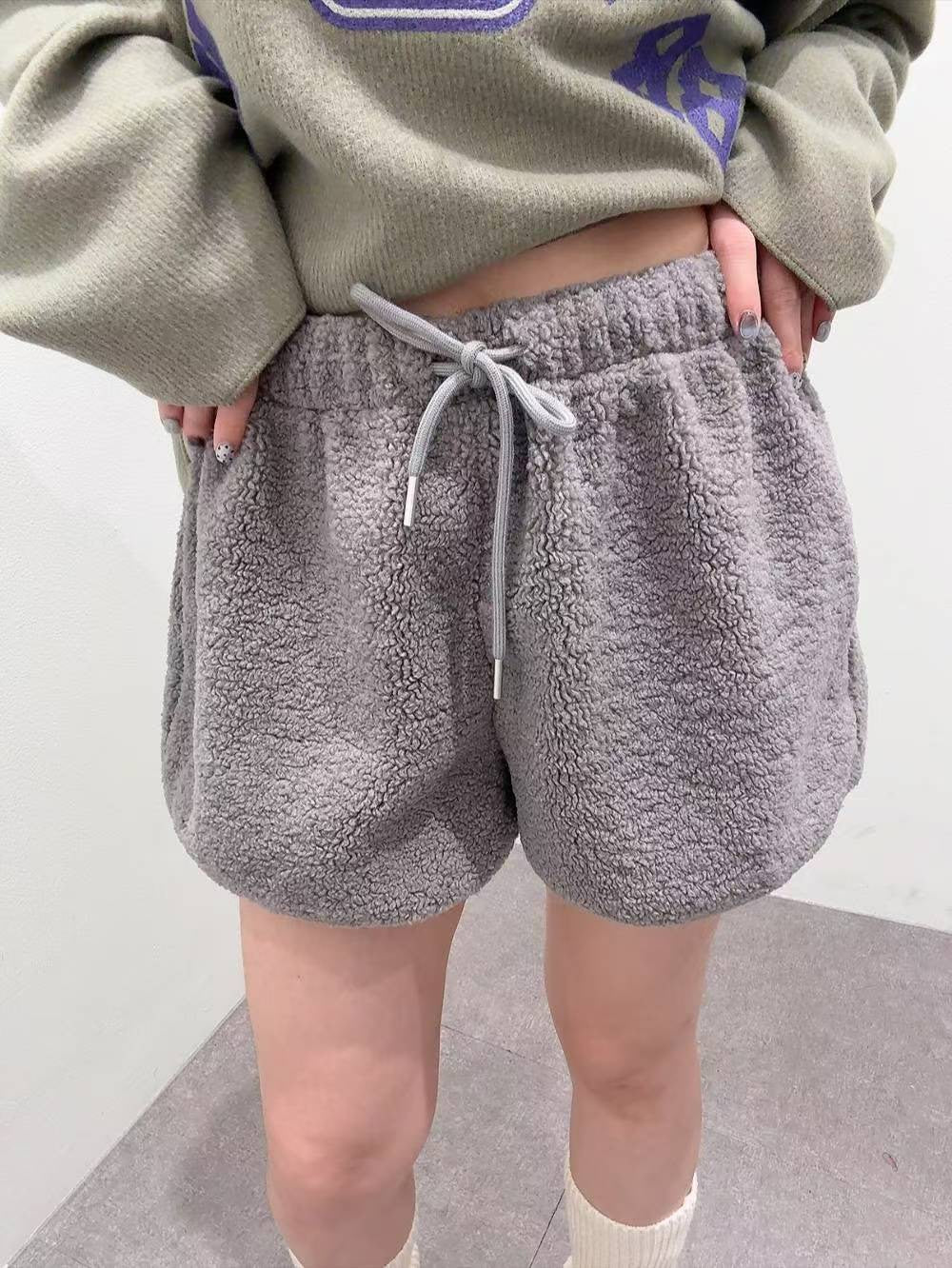 12A102 鬆緊腰羔羊毛短褲