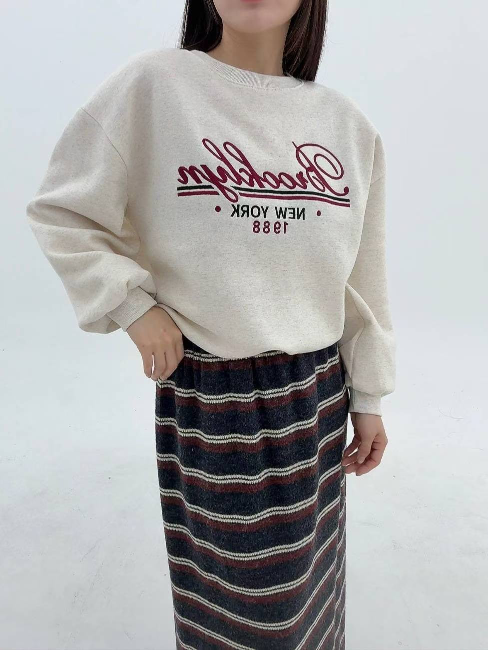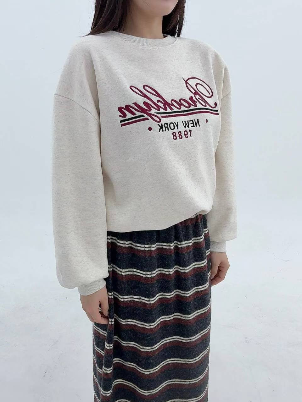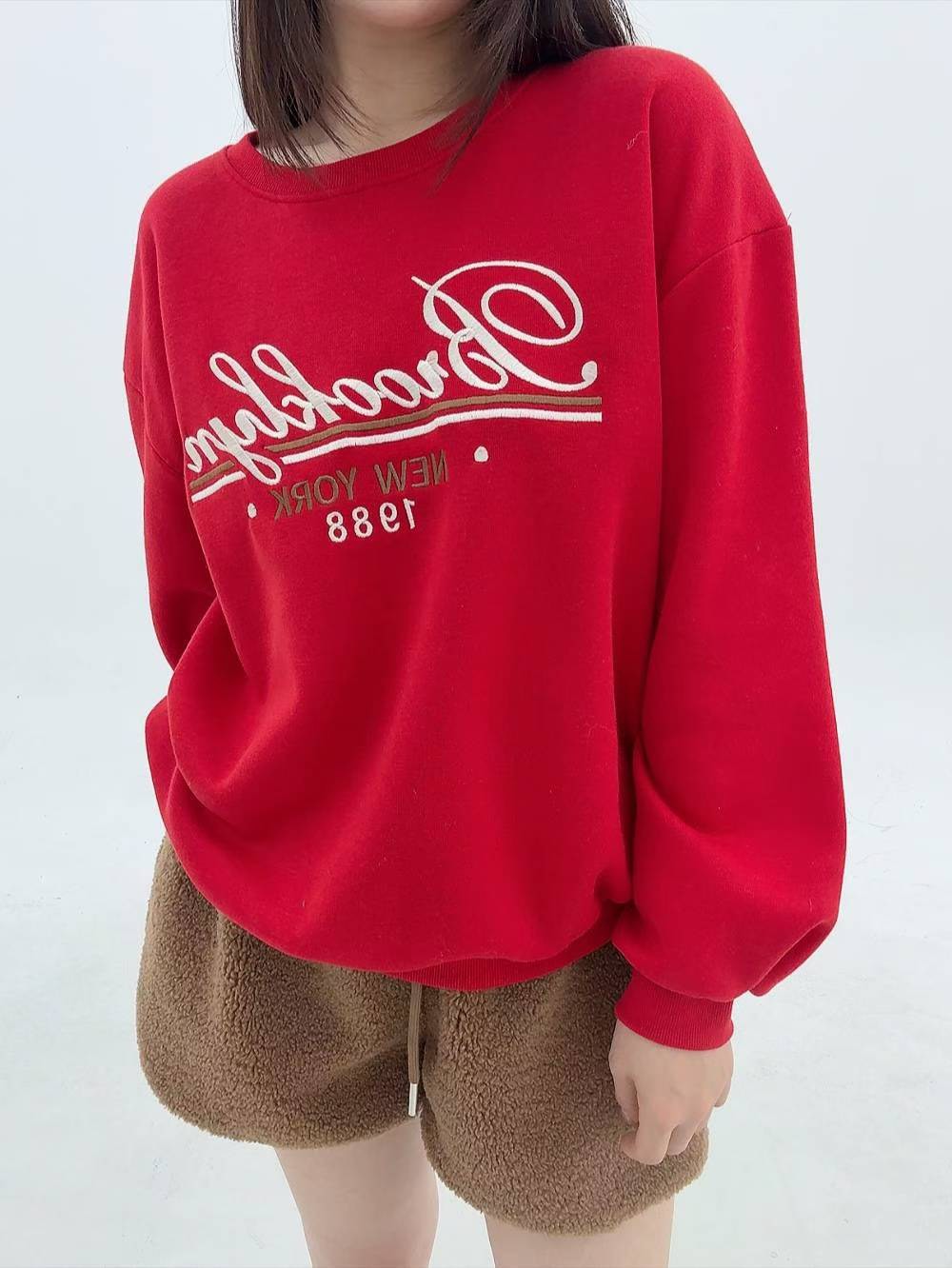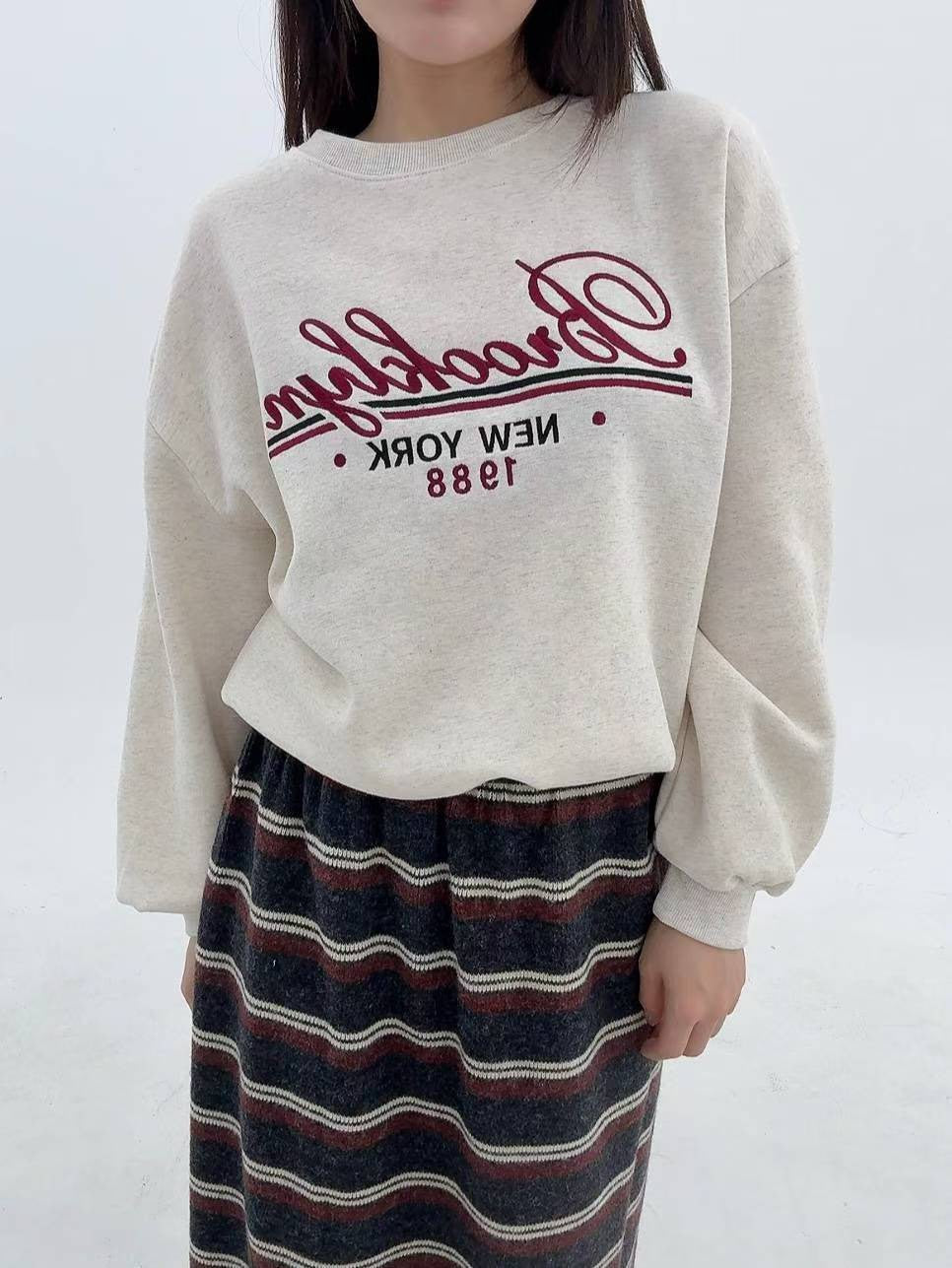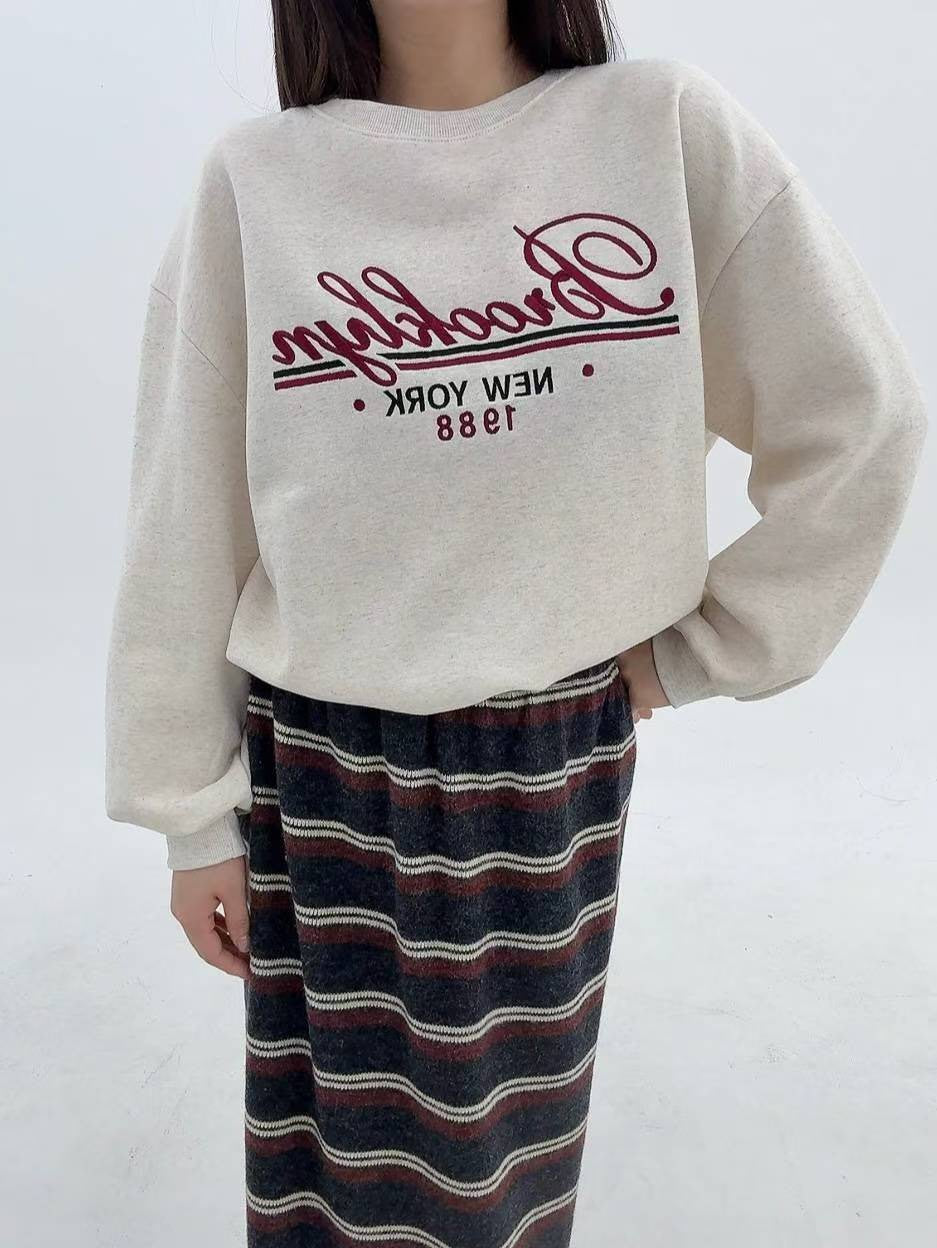 12A103 電繡草寫字母大學T(內磨毛)