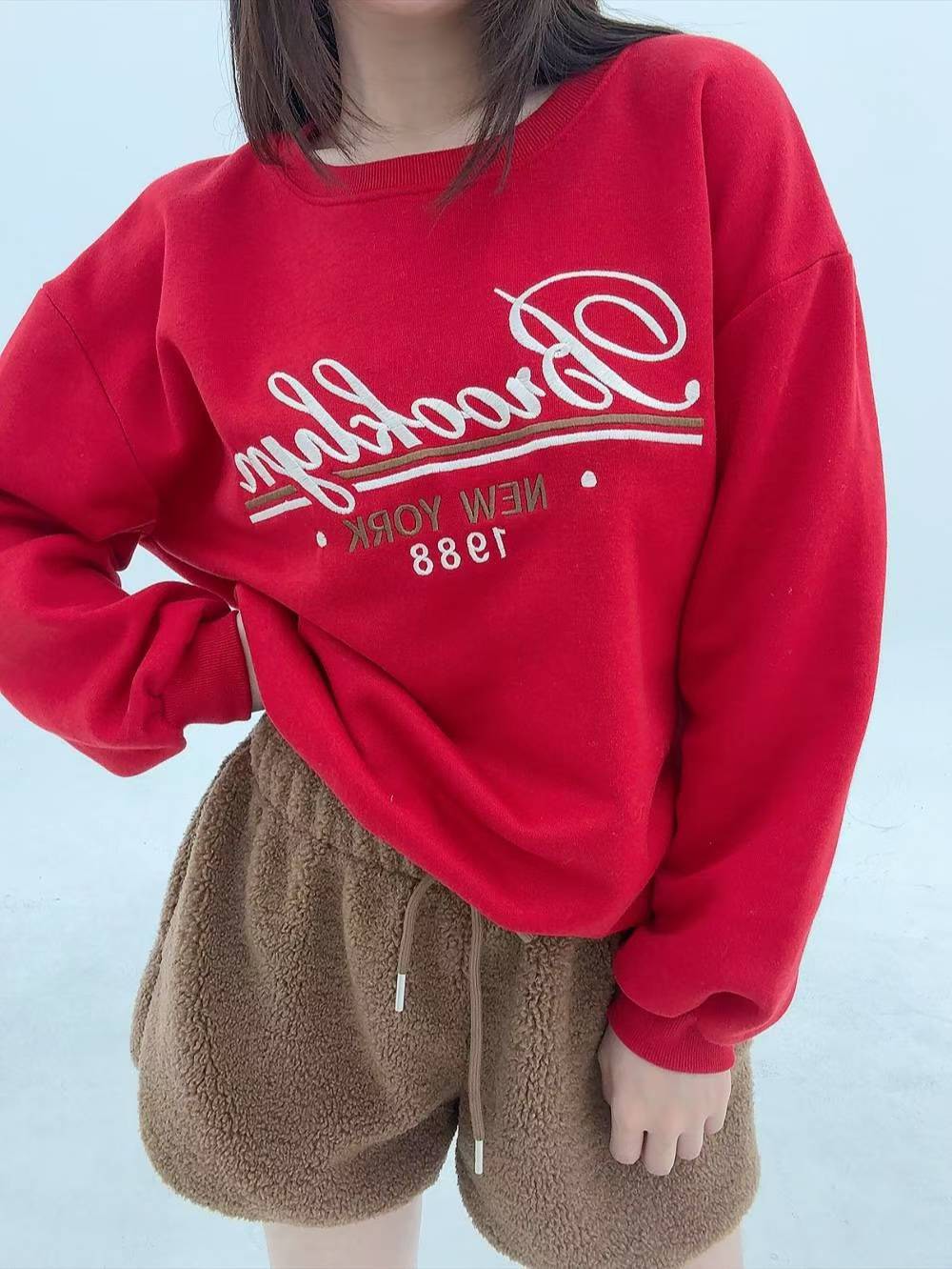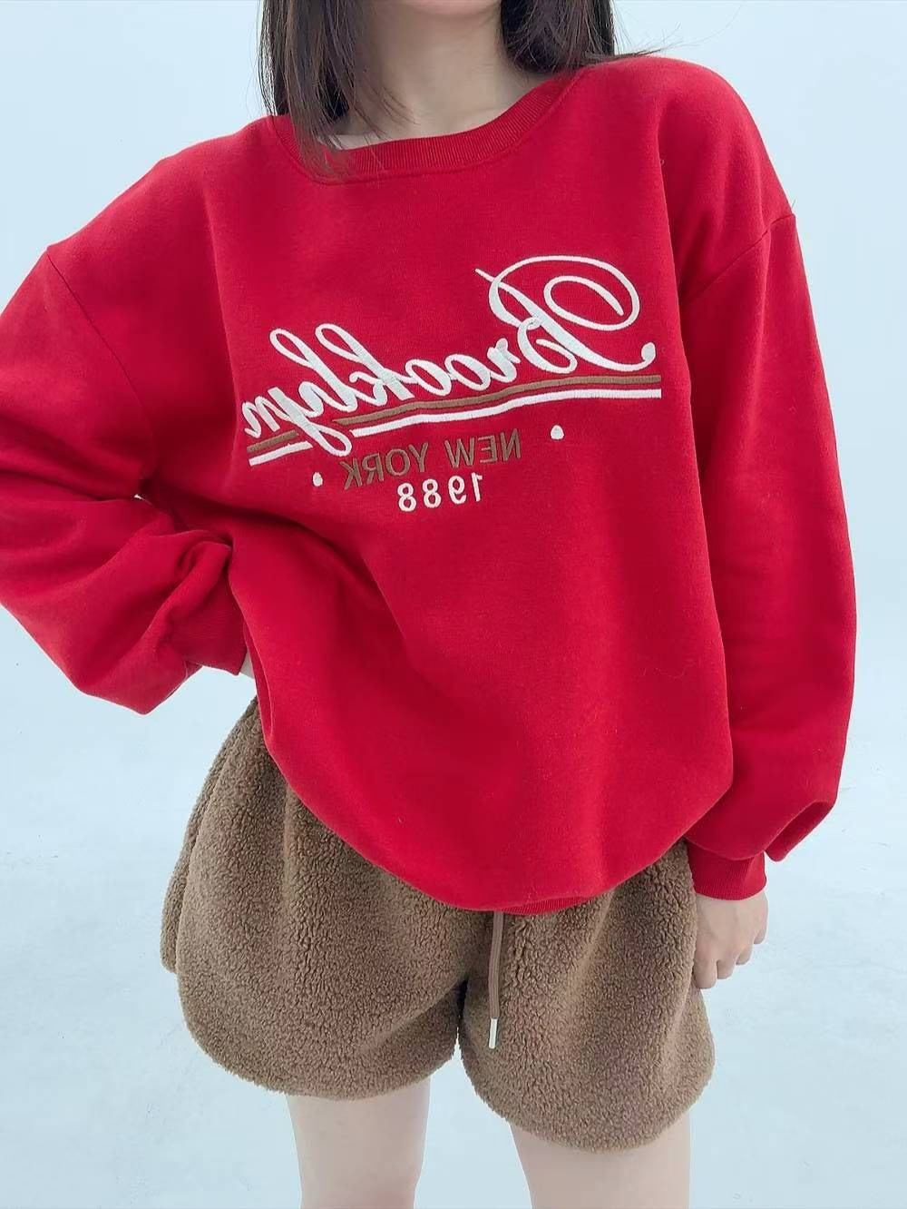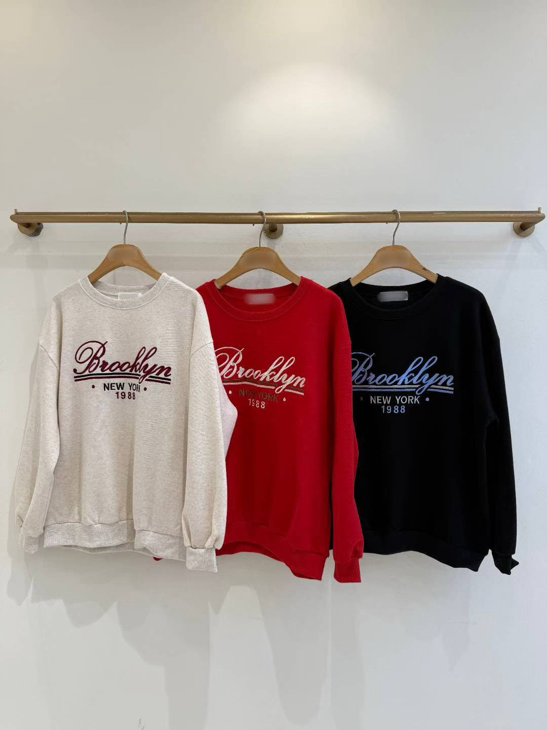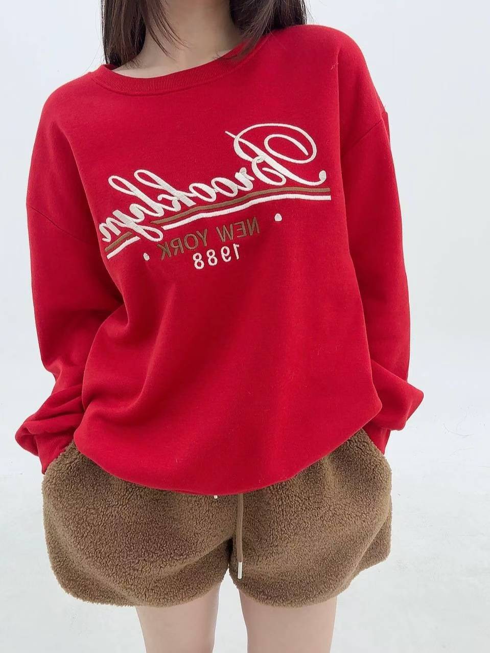 12A103 電繡草寫字母大學T(內磨毛)