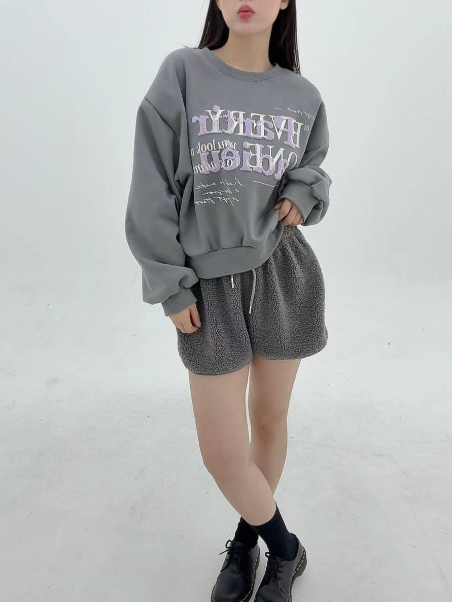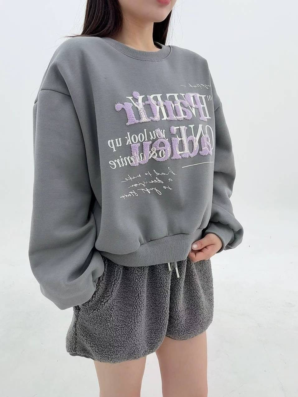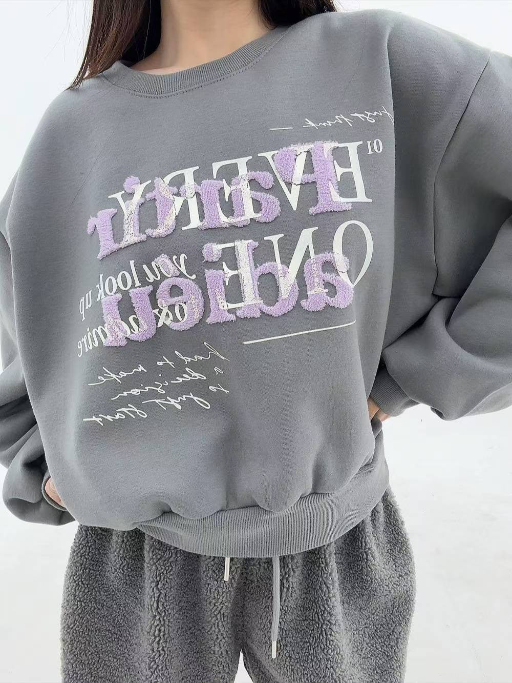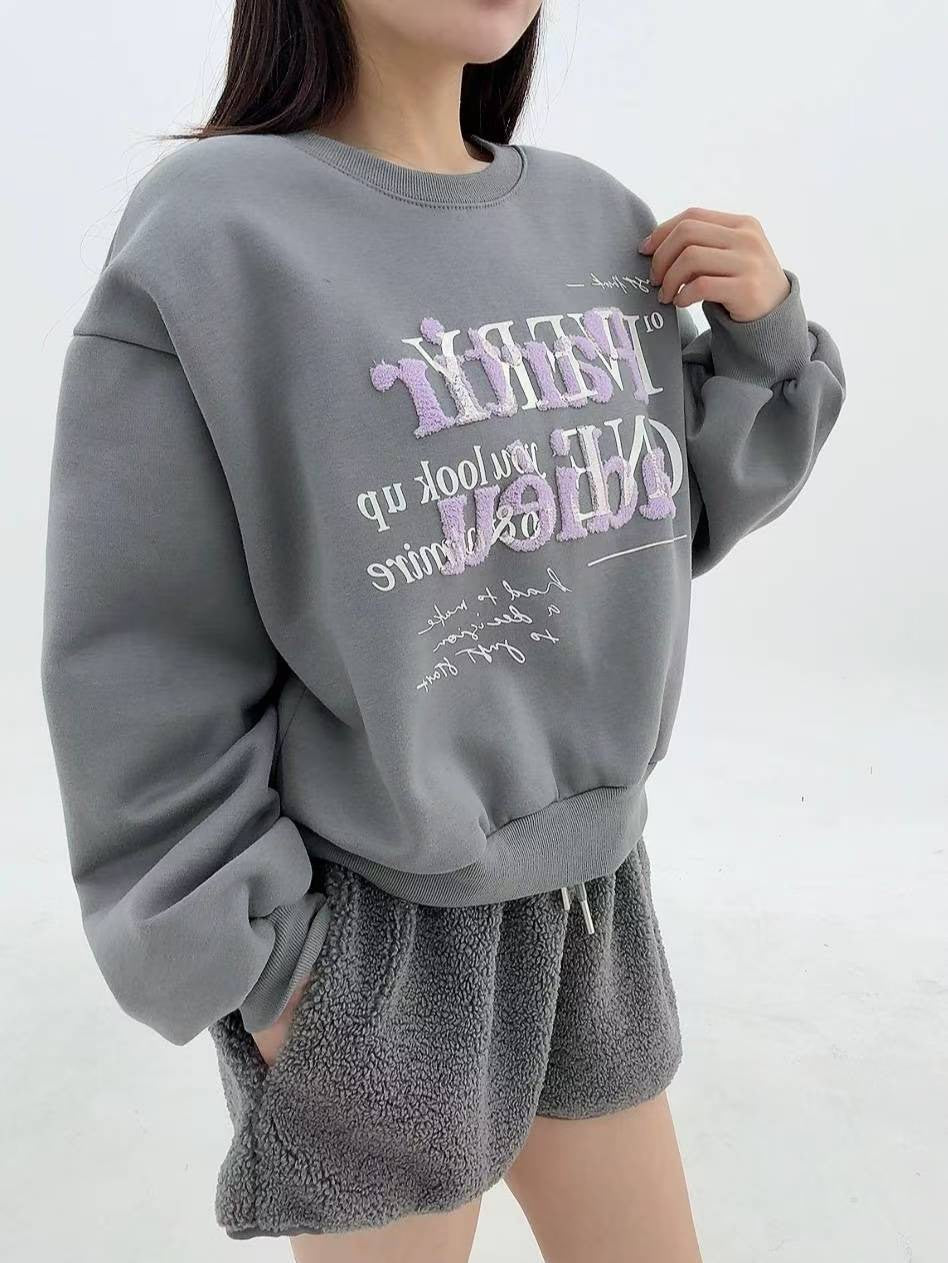 12A107 毛毛字母大學T(內磨毛)