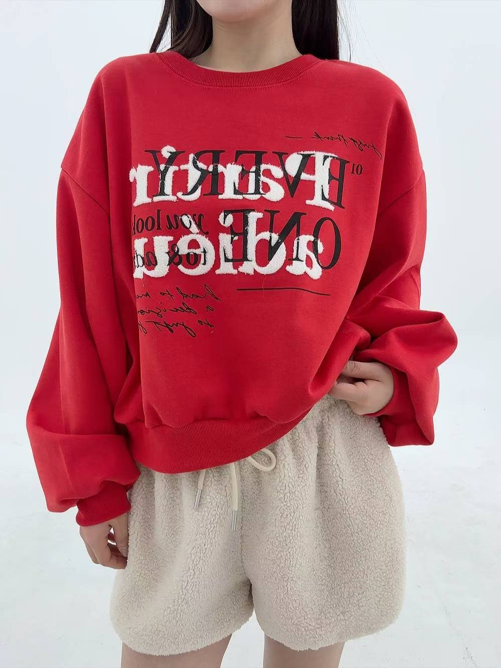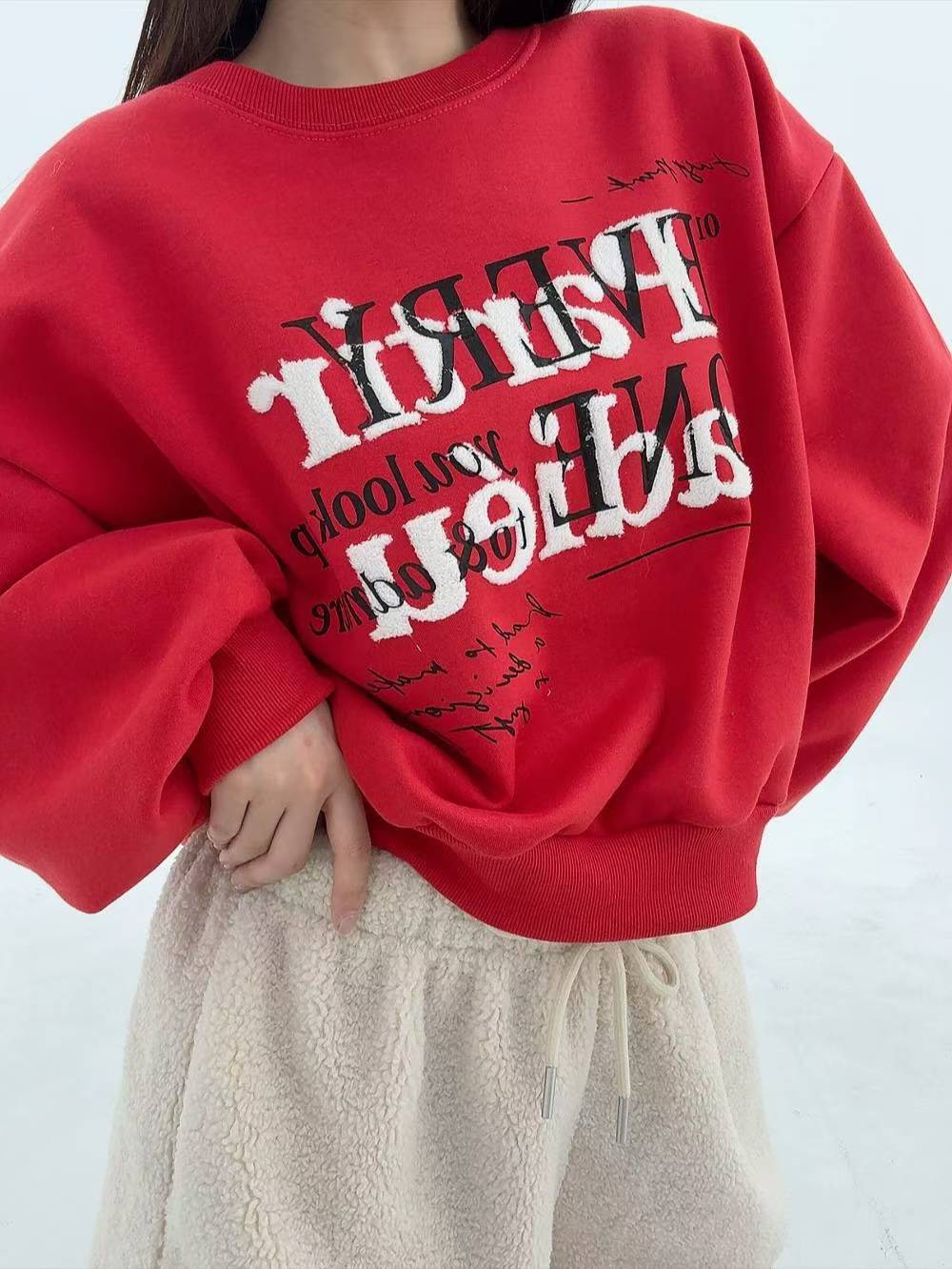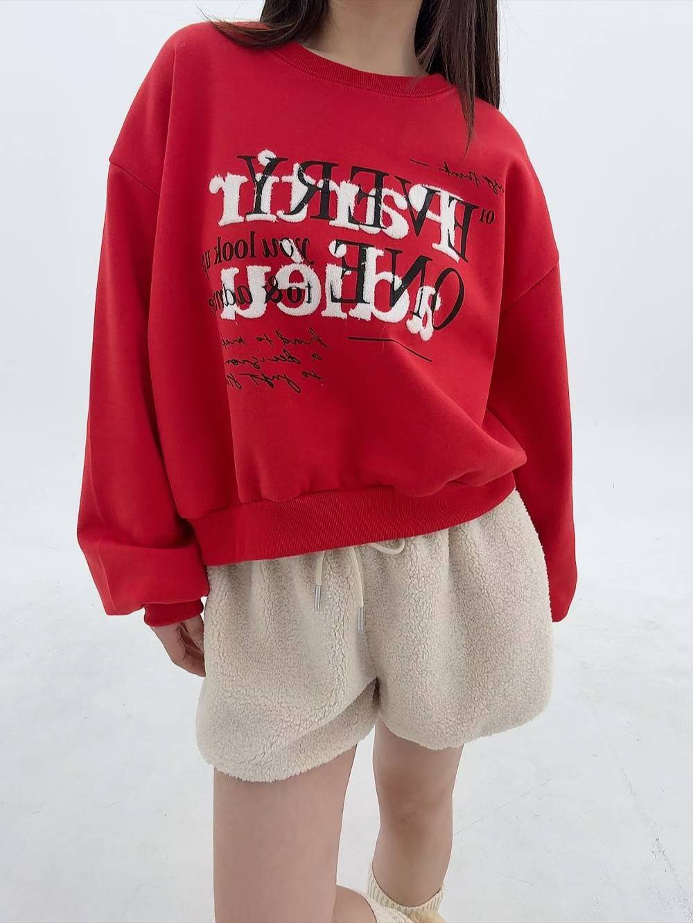 12A107 毛毛字母大學T(內磨毛)