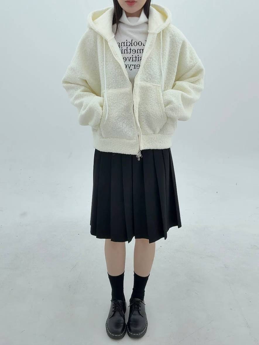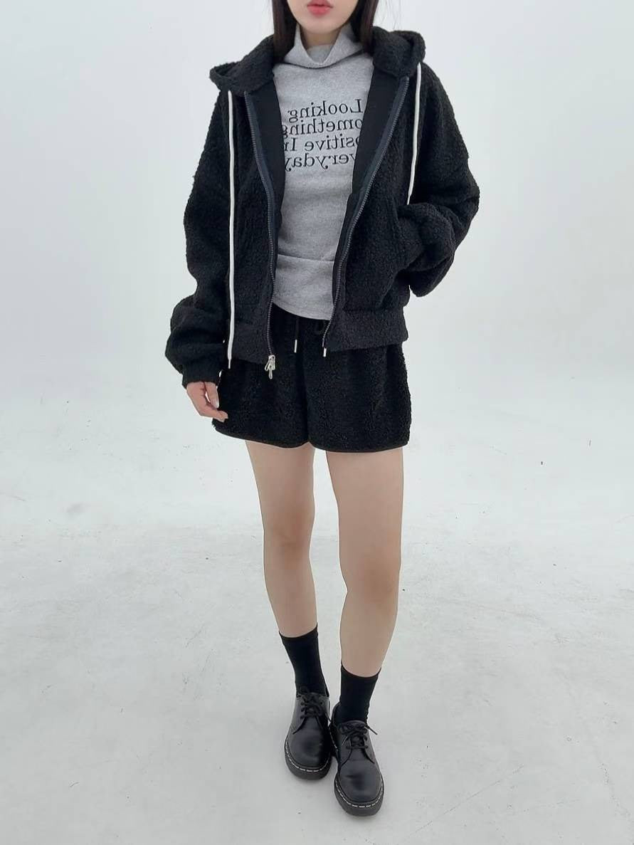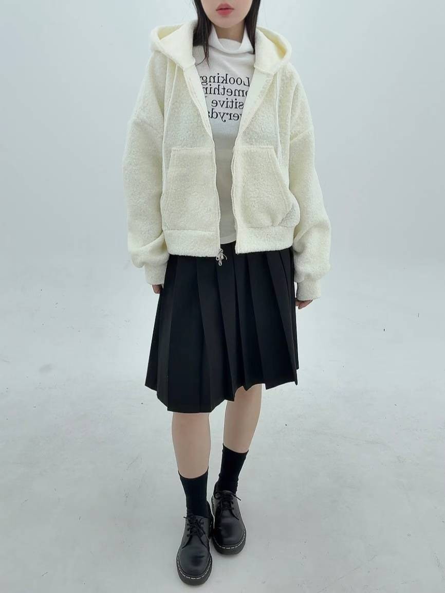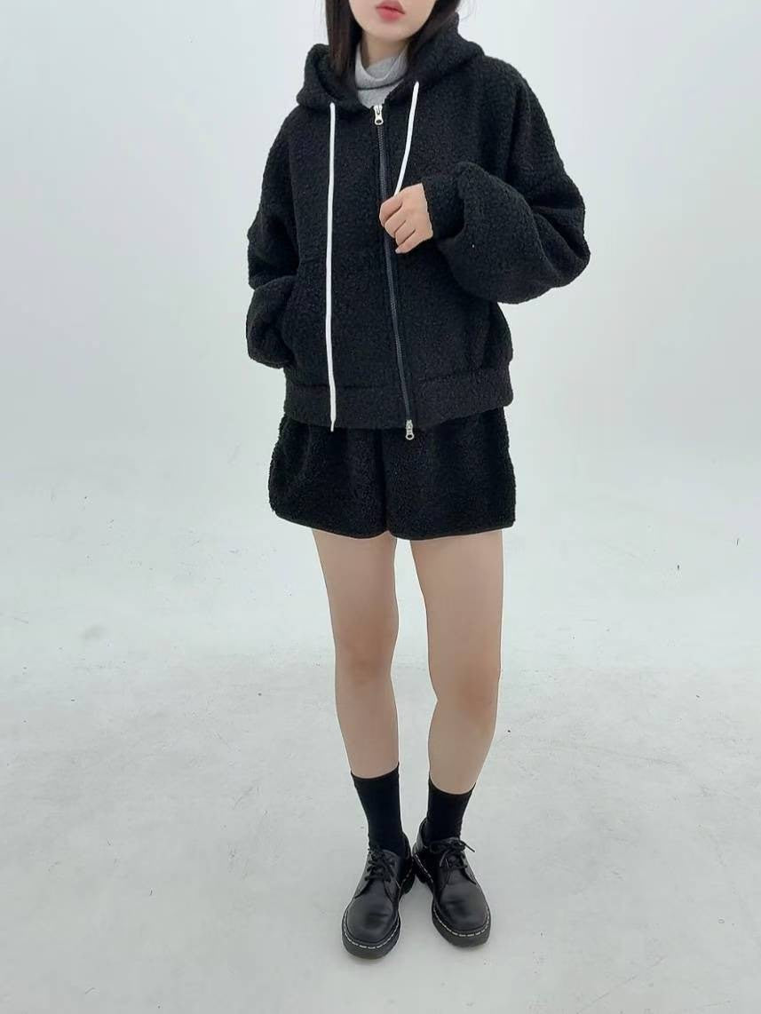 12A116 羔羊毛拉鍊連帽外套
