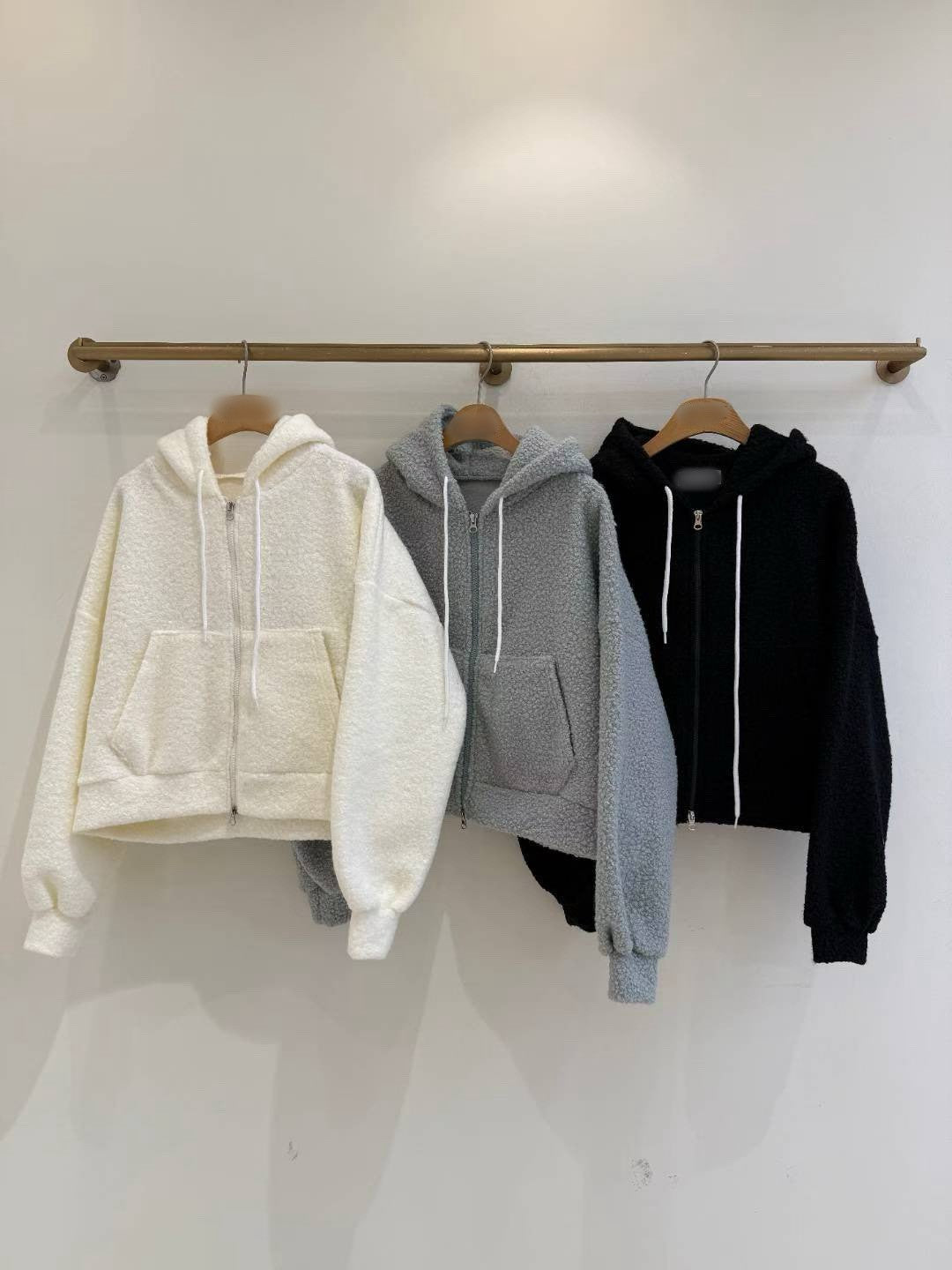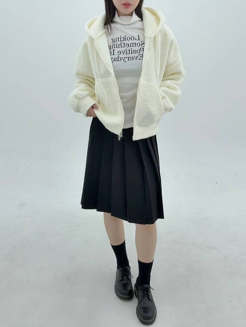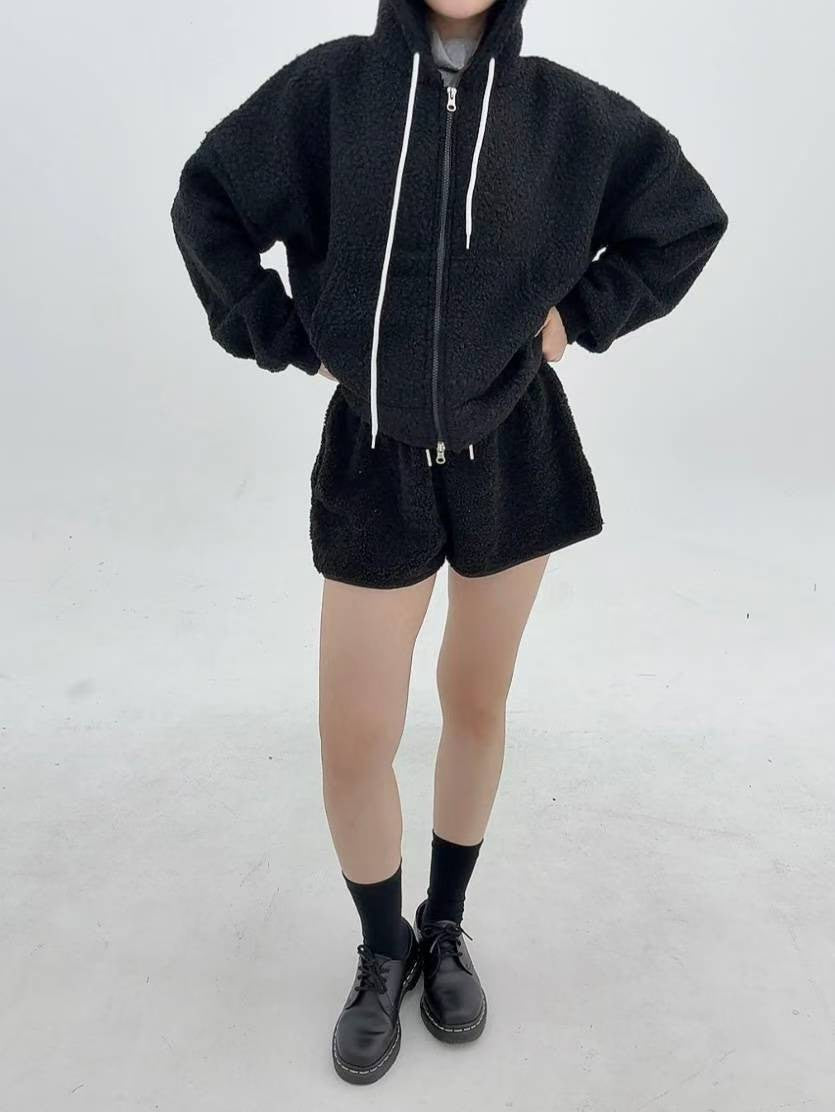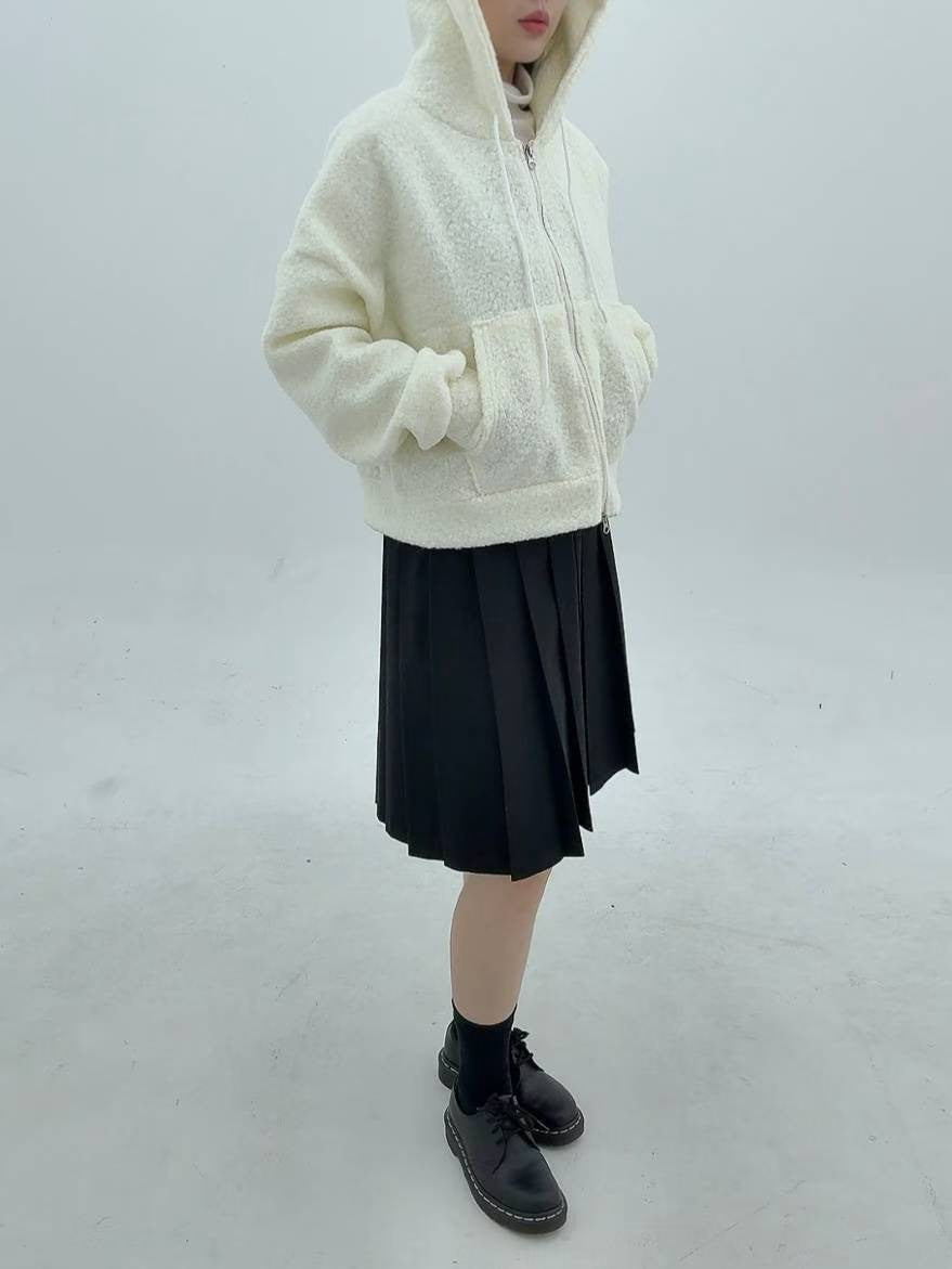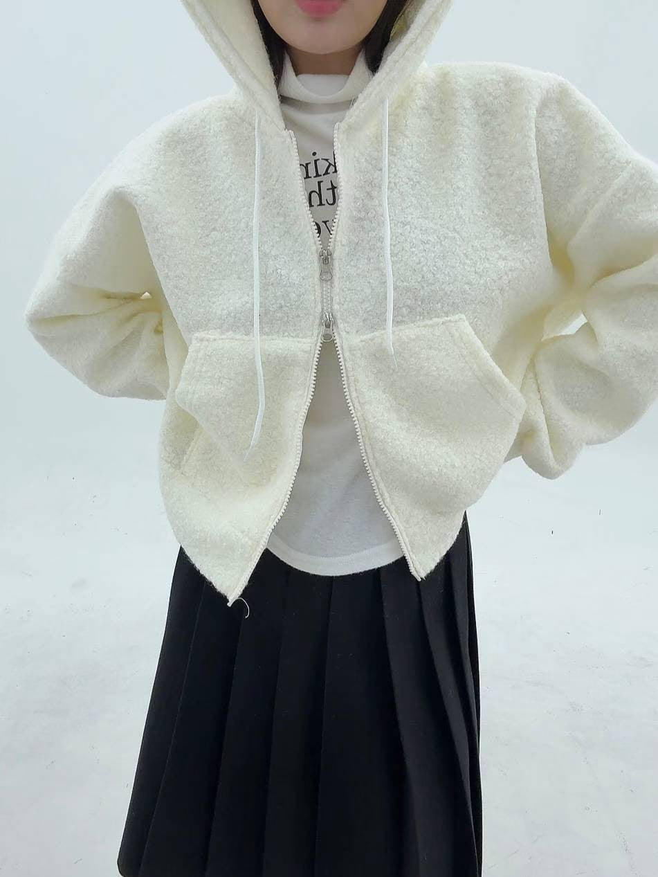 12A116 羔羊毛拉鍊連帽外套